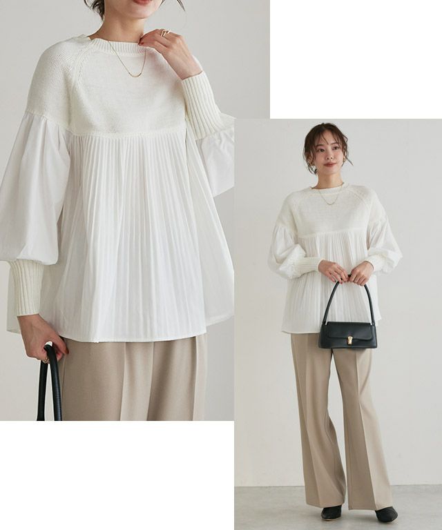 プリーツ切り替えニット