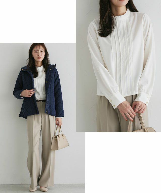 フリルネックタックTブラウス