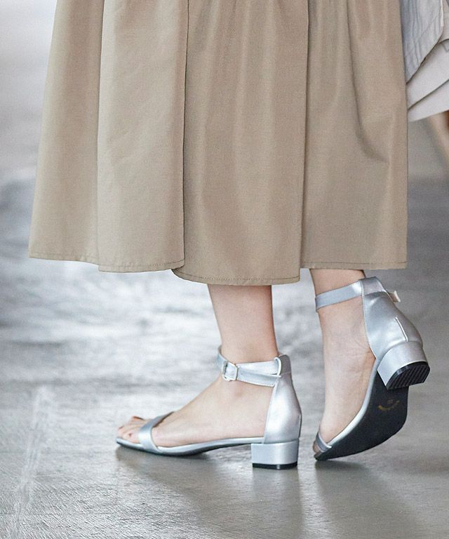 シンプルで使いやすい“スクエアトゥローヒールサンダル”