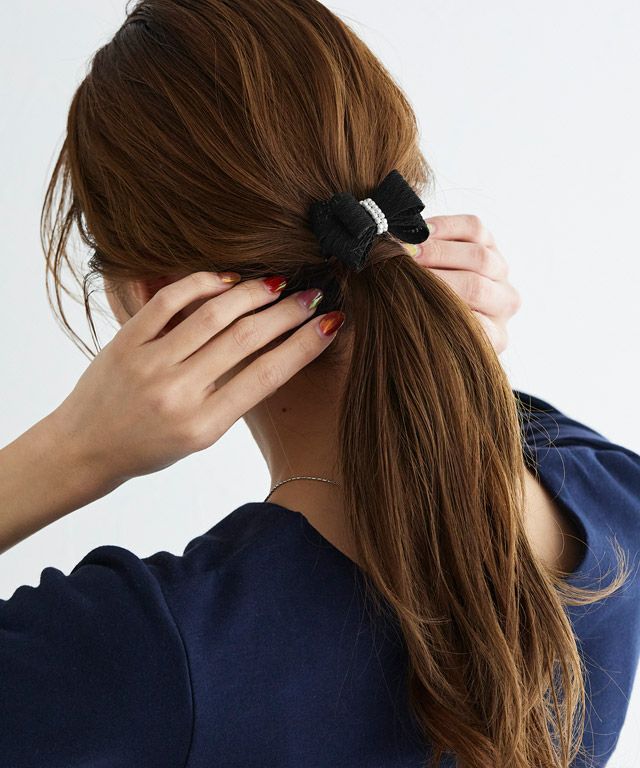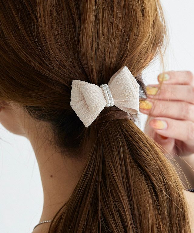 ヘアにもフェミニンアクセント“ツイードリボンヘアーカフ”