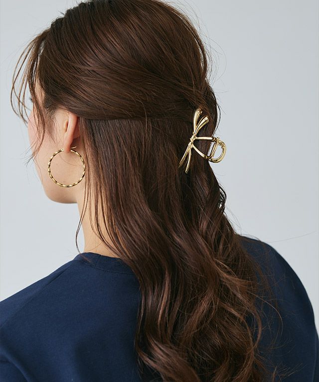 ハーフアップにもぴったりなサイズがデイリー使いに取り入れやすいクリップです。メタル使いが大人スタイルとの相性が良くシンプルなスタイリングのアクセントにおすすめです。