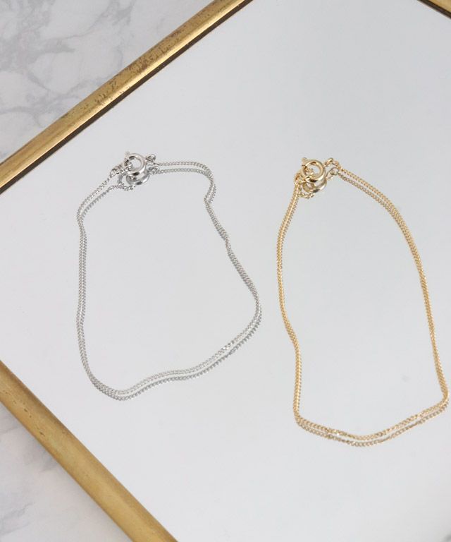 2本を繋げてロングネックレスにしたり、ブレスレットとミドルネックレスの別々でも着用が可能で、シチュエーションに合わせて楽しめます。