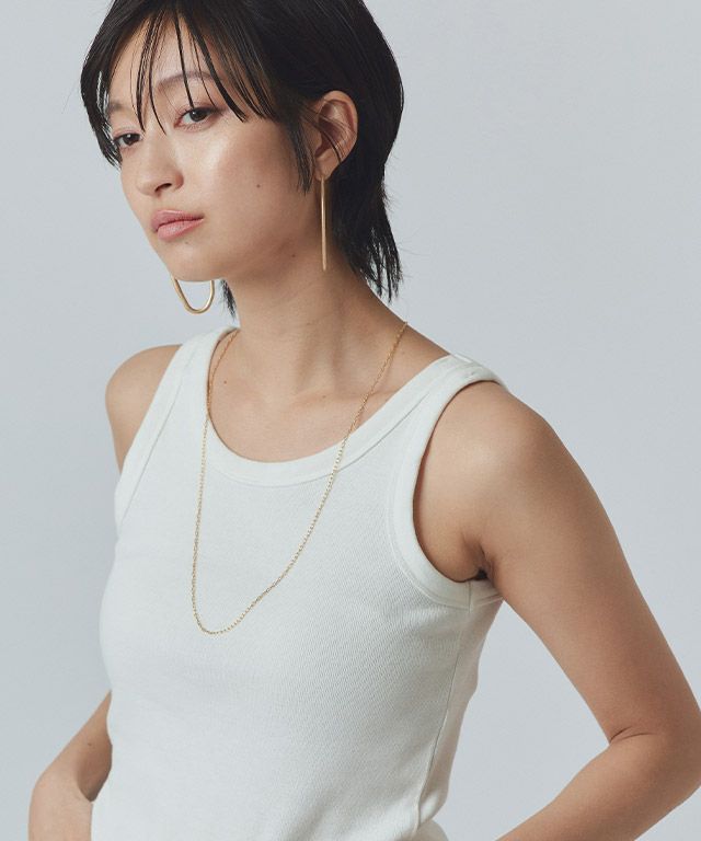 シーズンレスに着用できるようなデザイン。チェーンはオリジナル性のある、シグネチャーリンクでアクセントになる1本です。