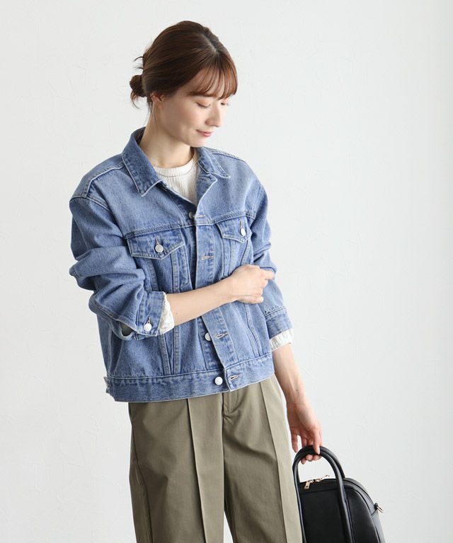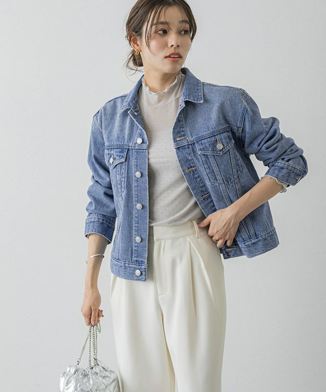 綿100%のさらっとした素材が素肌に優しく、程良いハリ感もあるため綺麗なシルエットをキープ。カジュアルすぎないウォッシュ加工が大人の女性に似合うポイントに。 ややルーズなシルエットがこなれた印象のデニムジャケット。トレンドに左右されずベーシックに着用しやすいシンプルなデザインに仕上げました。どんなスタイルにも取り入れやすく、ロングシーズン活躍する一枚です。 【ブランド】