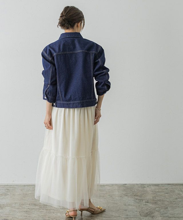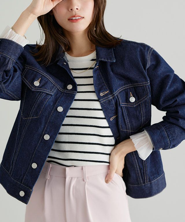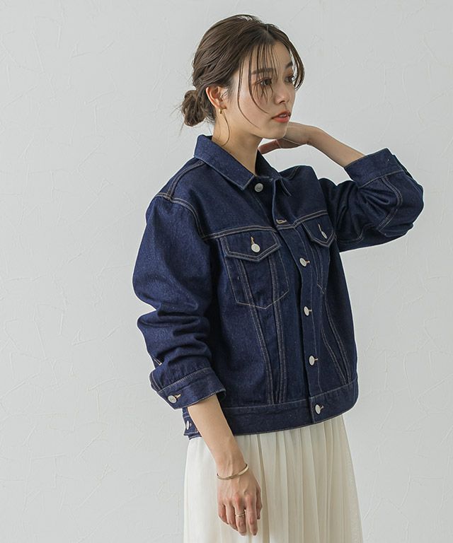 綿100%のさらっとした素材が素肌に優しく、程良いハリ感もあるため綺麗なシルエットをキープ。カジュアルすぎないウォッシュ加工が大人の女性に似合うポイントに。 ややルーズなシルエットがこなれた印象のデニムジャケット。トレンドに左右されずベーシックに着用しやすいシンプルなデザインに仕上げました。どんなスタイルにも取り入れやすく、ロングシーズン活躍する一枚です。 【ブランド】