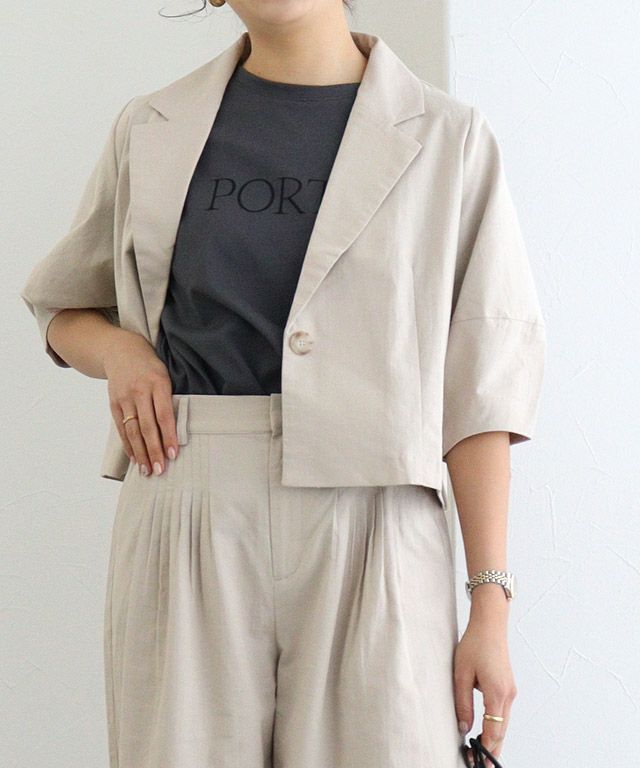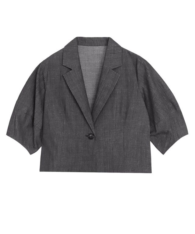 様々なボトムに合わせられる、バランスの取りやすいショート丈デザインです。ランタンスリーブで、袖のボリューム感がポイント。ほどよいハリ感素材で、立体的なシルエットに仕上げました。