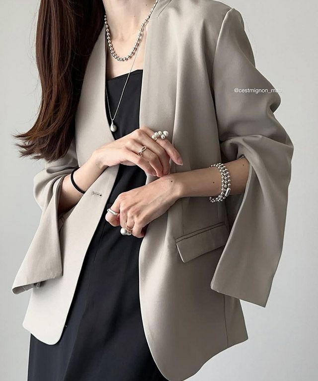 ノーカラーなので首回りがすっきりとした印象になり、ネックのあるアイテムとも相性抜群なジャケット。2wayで楽しめるスリーブで、シンプルな着用はもちろん、ファスナーを開けてインナーを見せたり、肌見せしたりと様々な着こなしができる一枚。シングルボタンできちんと感と、大人な雰囲気をプラスしつつ、トレンドライクなスタイリングにもなる優秀ジャケットに仕上げました。
