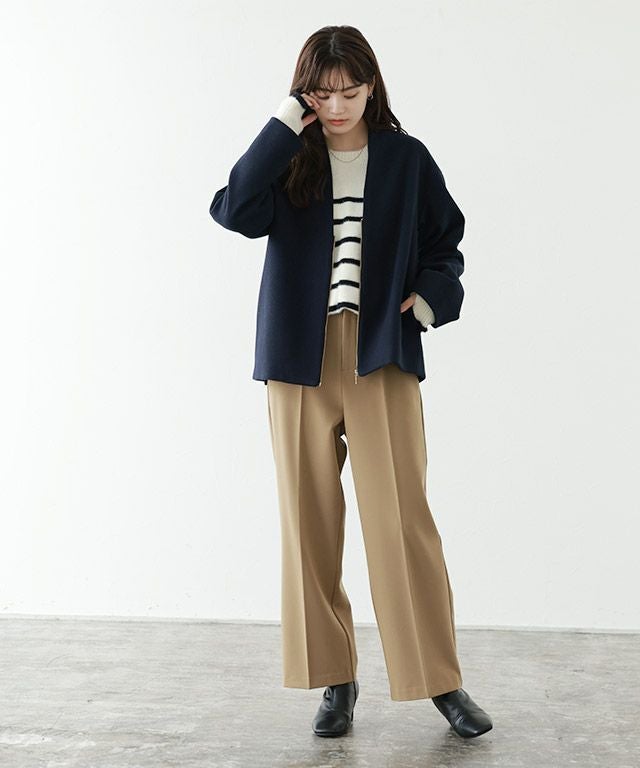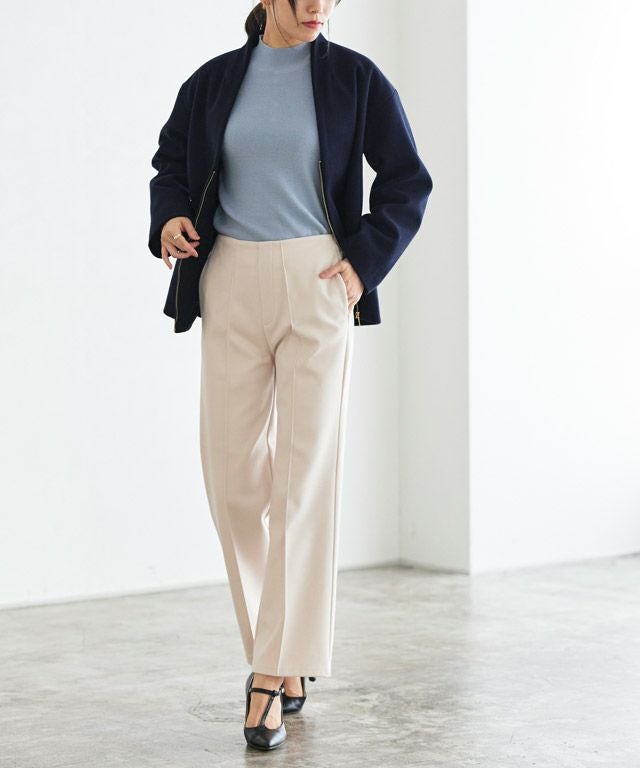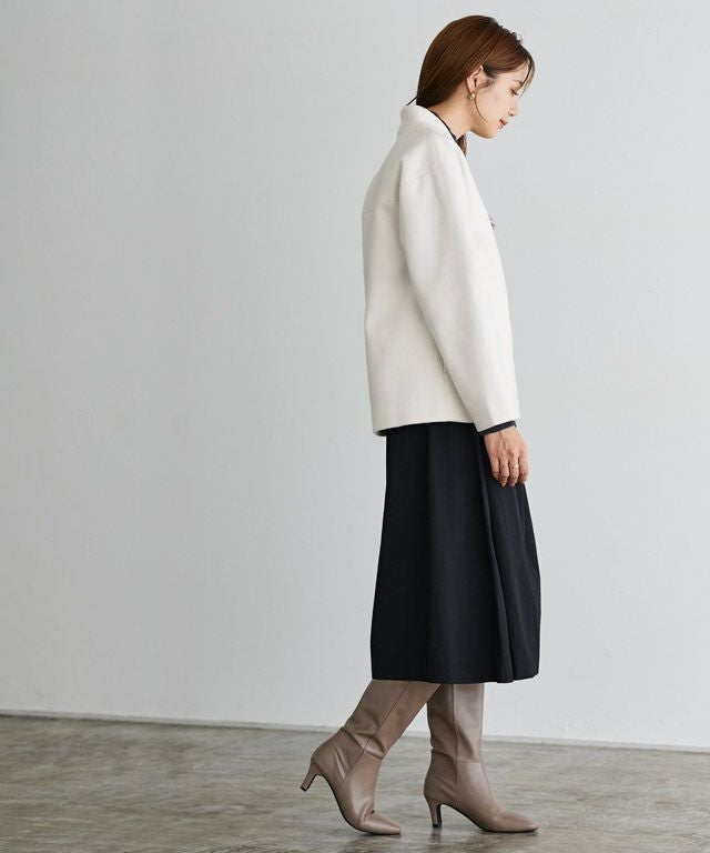 厚手で滑らかな手触りのメルトン素材を使用。ウールライクでしっとりとした風合いが上品な印象を与え、高見えを叶えてくれます。