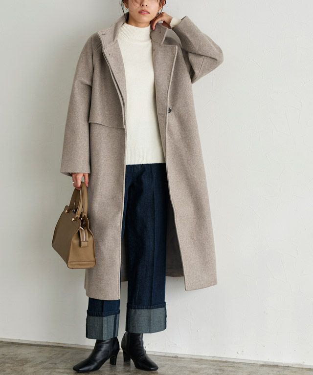 トレンドライクな装いに“メルトンスタンドカラーコート ”