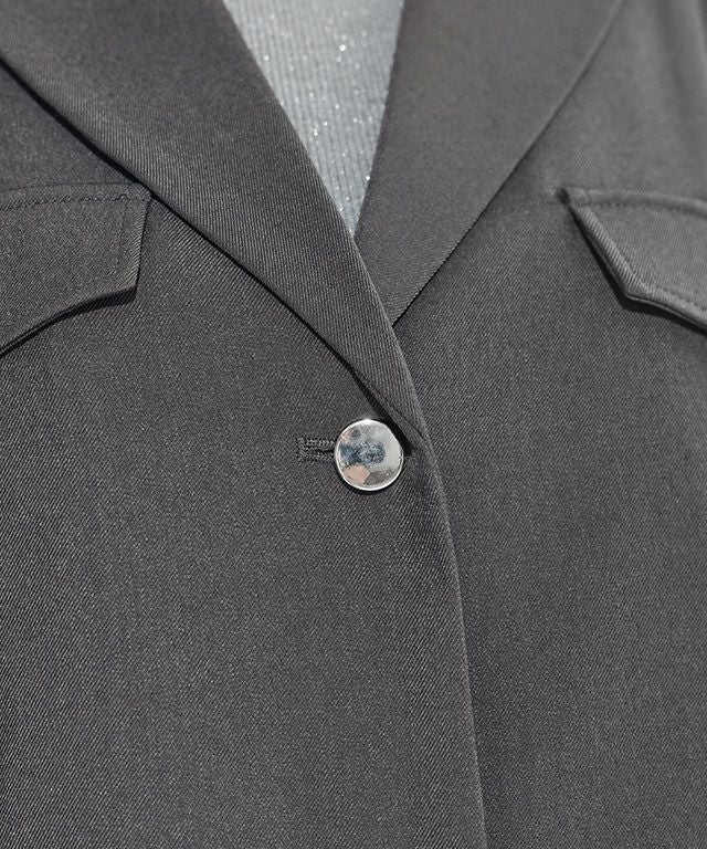 肩に施したパフデザインがレディ感を引き立てる一枚。程よく首元の開いたテーラードカラーがスタイリッシュに仕上げます。シルバーボタンがコーデのアクセントに。
