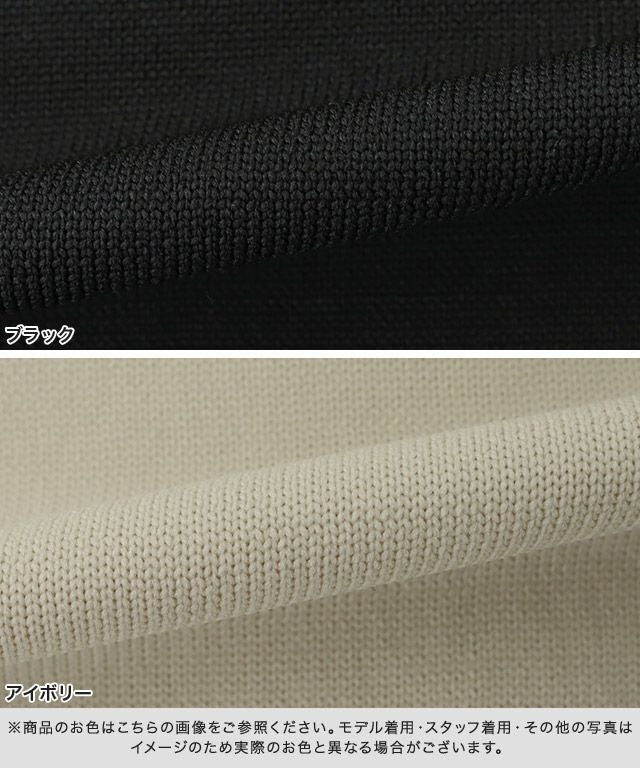 また、ニット製品は生産の過程上「生地を織る際の糸の継ぎ目」繊維の「混紡」、プレス加工、製品洗い加工によって形やサイズ(5cm前後)に誤差が生じる場合がございますが品質上の問題はございません。