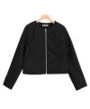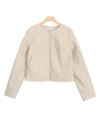 首元をすっきりと見せてくれるノーカラーデザインにし、クロップド丈がトレンドライクなスタイリングに仕上げてくれる一枚です◎