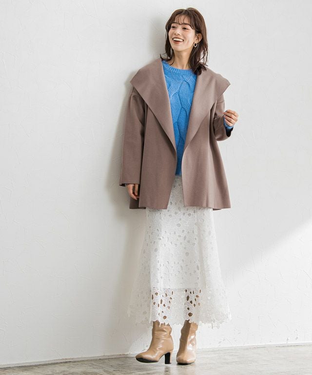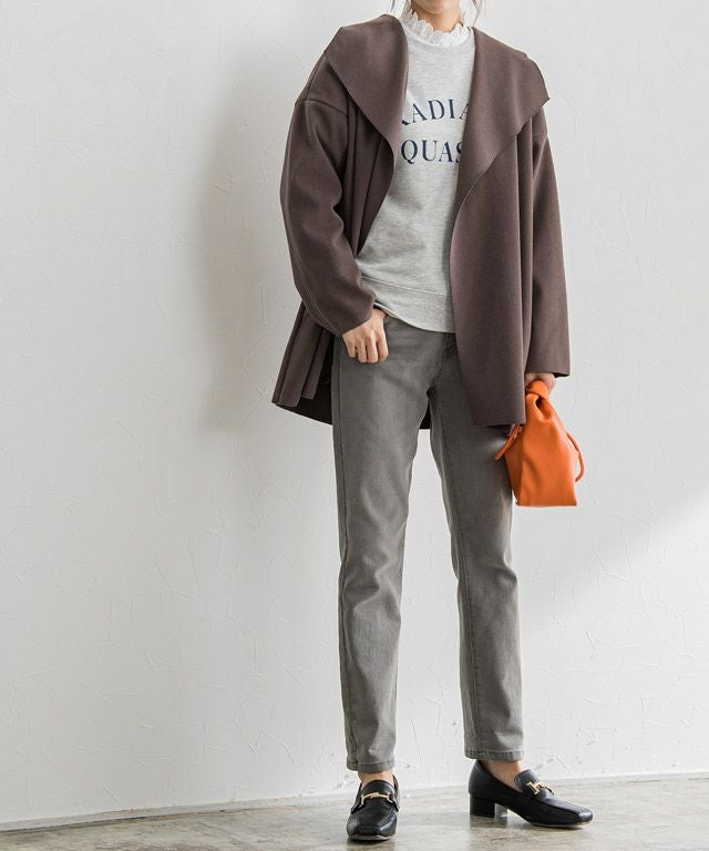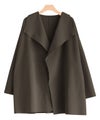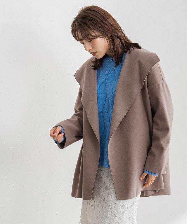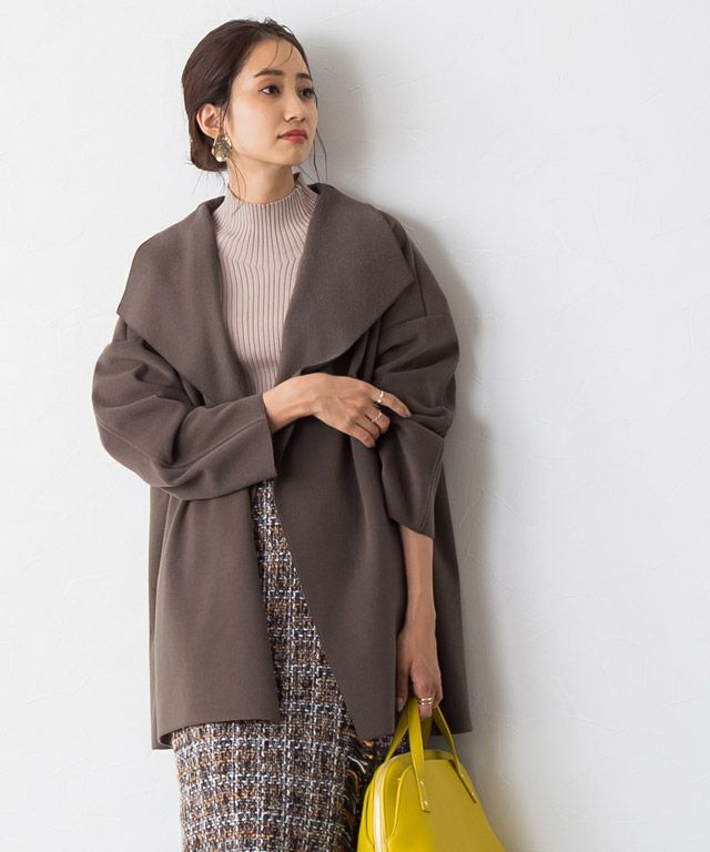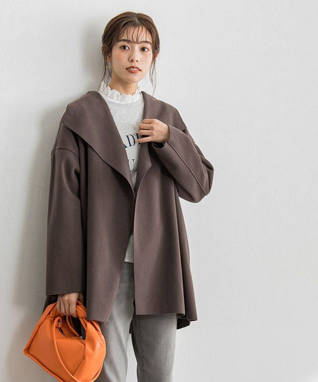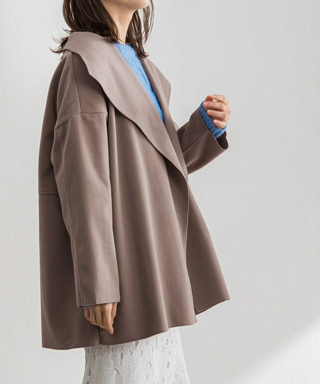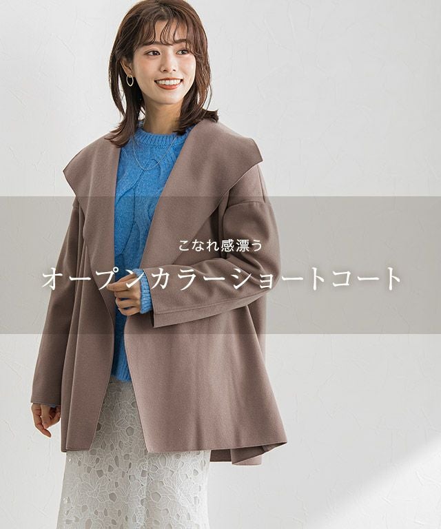 こなれ感漂う“オープンカラーショートコート” 二枚の生地を貼り合わせたダブルフェイス素材。薄くても暖かく、表面はふわっとした風合いです。 オープンカラーが顔周りを華やかな印象にし、ゆったりとしたサイジングにすることでこなれ感が漂う一枚に。ショート丈なので低身長さんもバランス良く着用できます◎【ブランド】Pierrot(ピエロ)