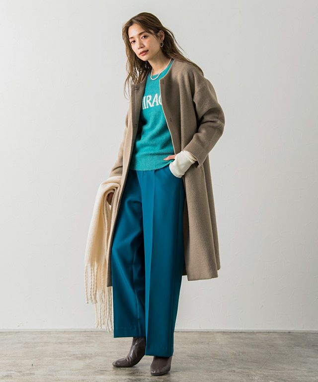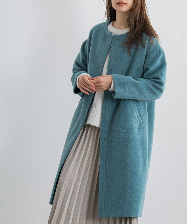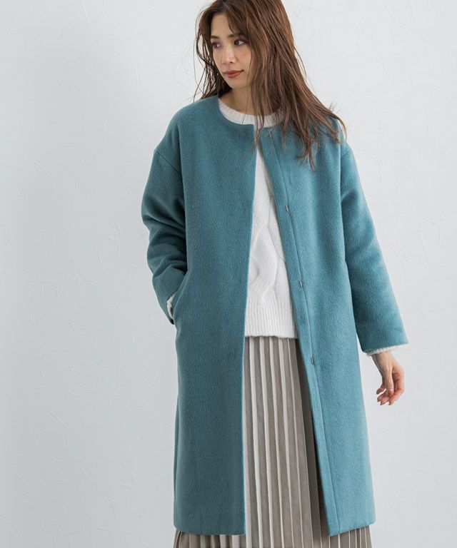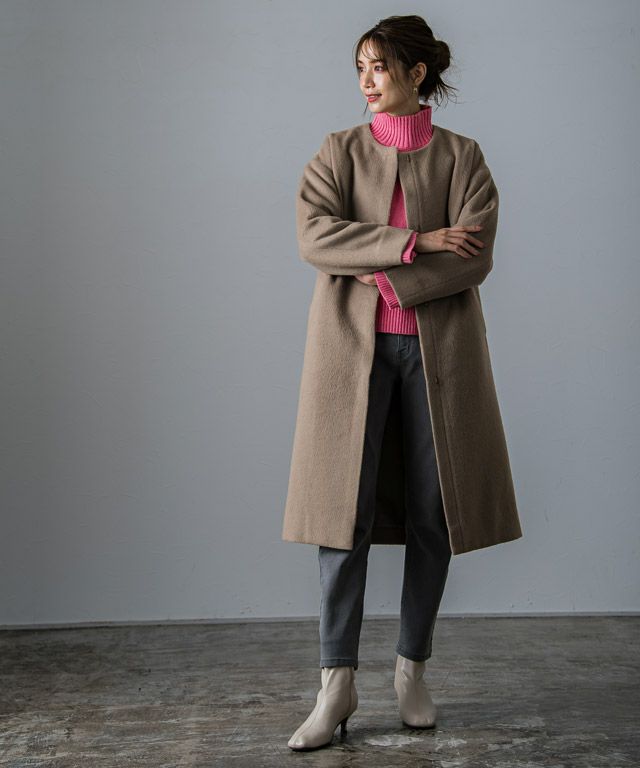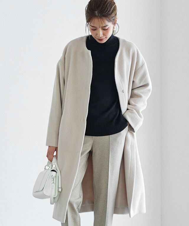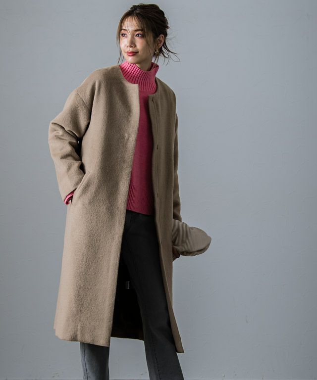 さりげないフェミニンが薫る“シャギーノーカラーコート”