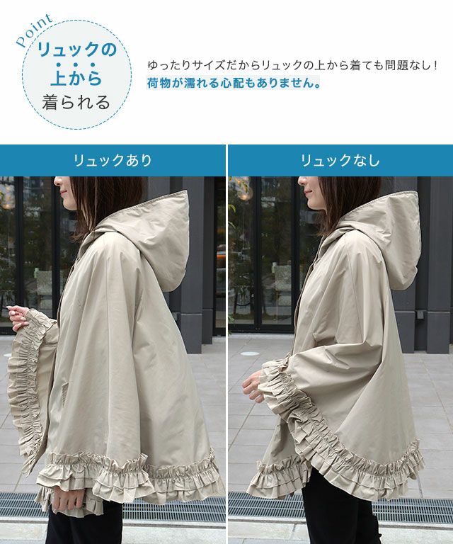 雨の日もお洒落を楽しめる“フリルポンチョレインコート”