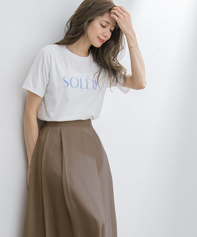 Mサイズ…着丈は足首あたりの丈感でした。ウエストはゴムになっているので楽な穿き心地です。タックが入っており、フレアラインがきれいでした。さらっとした生地感です。落ち感がありました。 |