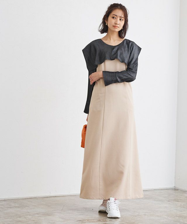レトロムードなトレンドスタイルに“デニム風ビッグカラーブラウス”