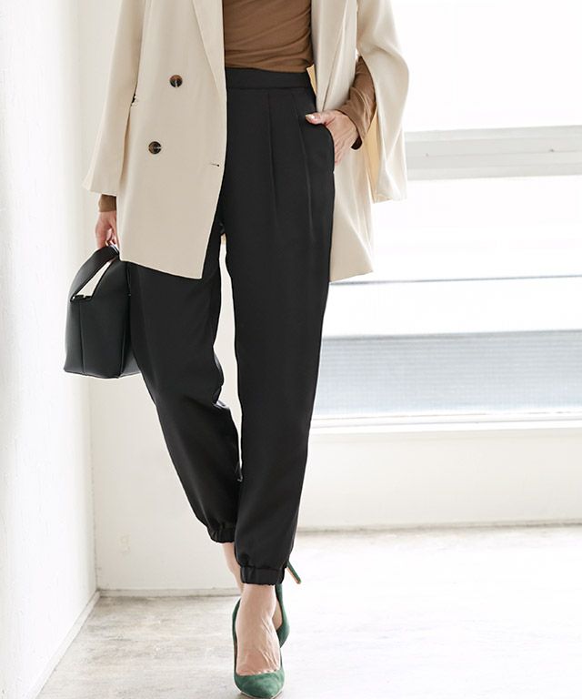 着丈は足首が見える丈感でした。ウエストはゆとりがあり、ゴムなので伸縮性があります。ヒップにはゆとりがあります。脚周りは程よいゆとりがありました。滑らかな生地で肌触りが良いです。穿くだけでトレンド感のあるコーデに仕上がります。