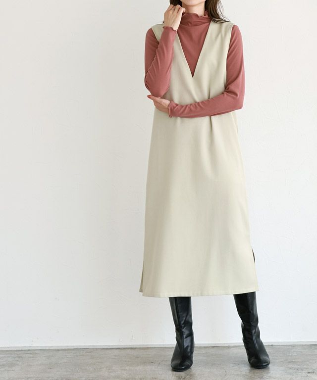 片面のみセンターにステッチ切替を入れているので、一枚で主役トップスとしても使用できる万能アイテム。前後どちらでも着用頂けます。ボトムにインして一枚で着用したり、ジャンパースカートやシャツ、ニットなどのインナーとしても幅広く着回せます。定番のインナーとして数枚もっておくと、お手持ちのアイテムとの組み合わせ次第でいろんなスタイリングを楽しめて便利です。