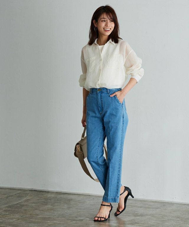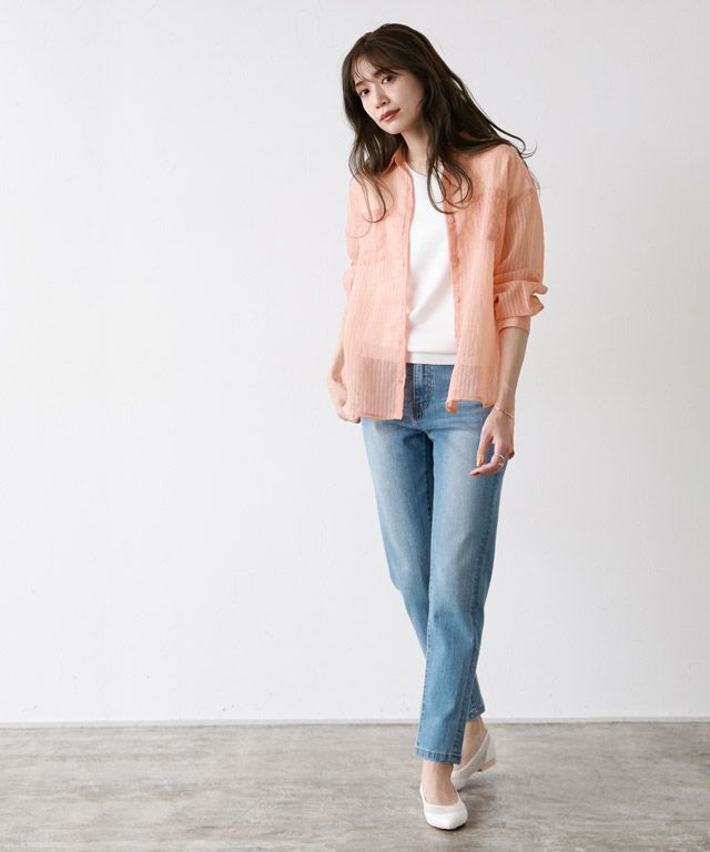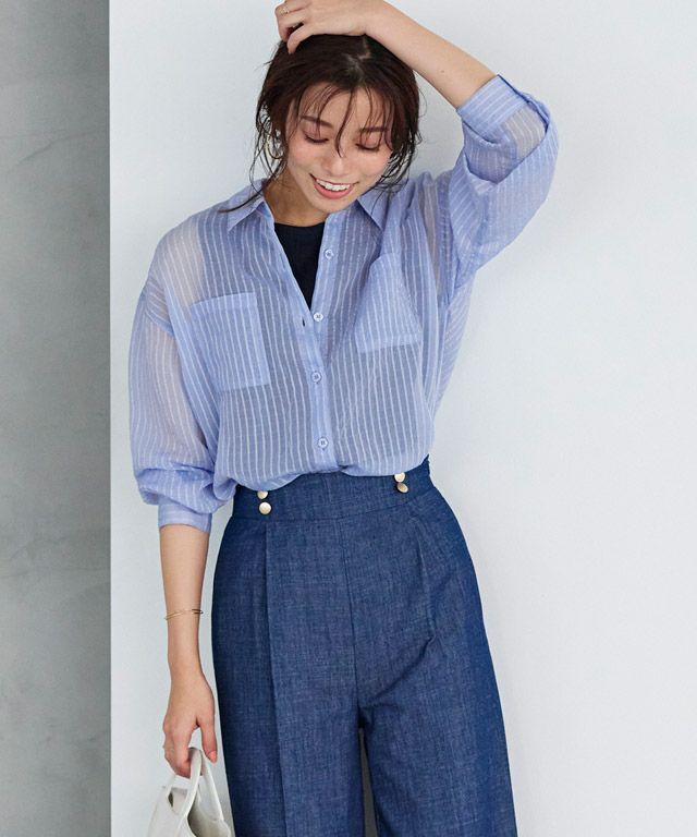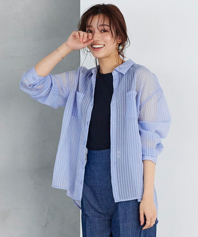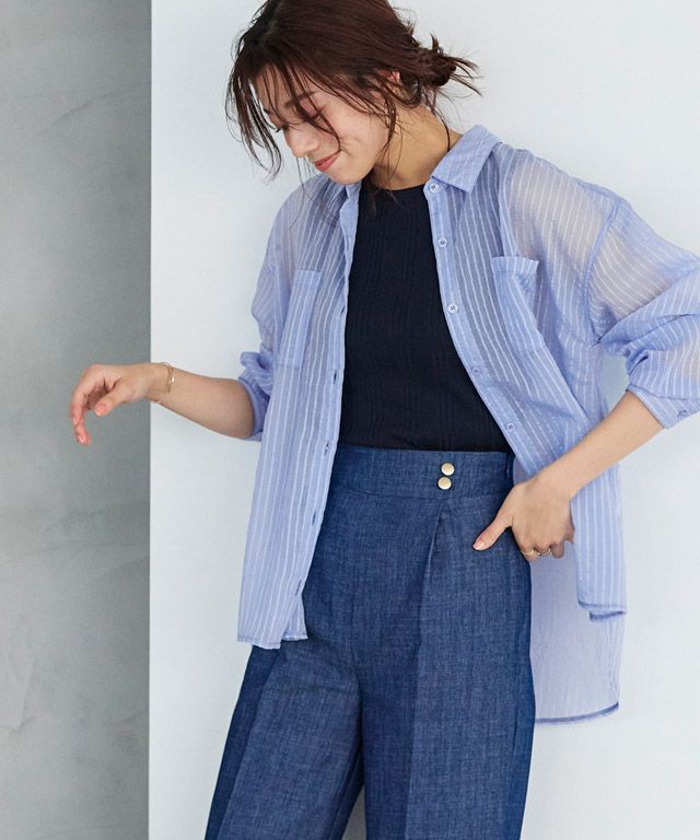 トレンドライクな抜け感スタイルに“シアーストライプシャツ”