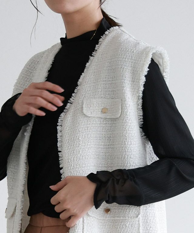 羽織るだけでトレンド感のある着こなしに“ツイードフリンジジレ”
