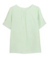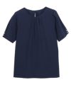 後ろ襟と袖口に小粒のパールをあしらい、レディライクな雰囲気に。袖にスリットを施し、ちらっと見えるのが今年のトレンドにマストなデザインポイントです。シンプルなデザインで、ボトムスを選ばず着用可能。