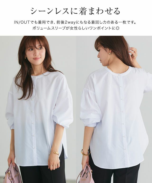 着回しができて着映え感のある“2wayパールボタンブラウス”