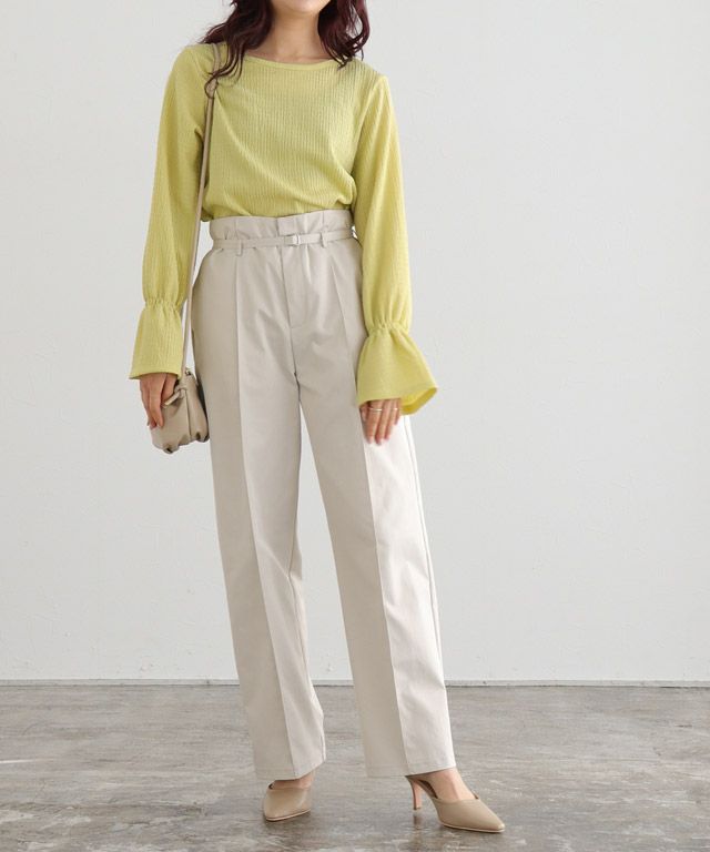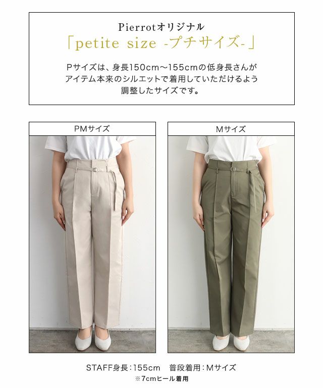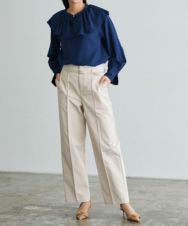 トップスをインした時にもウエストがきれいに見えるように、ベルトで調整可能に。ピンタック仕様で美脚効果も◎トレンドに左右されない、ベーシックに着られるデザインに仕上げました。