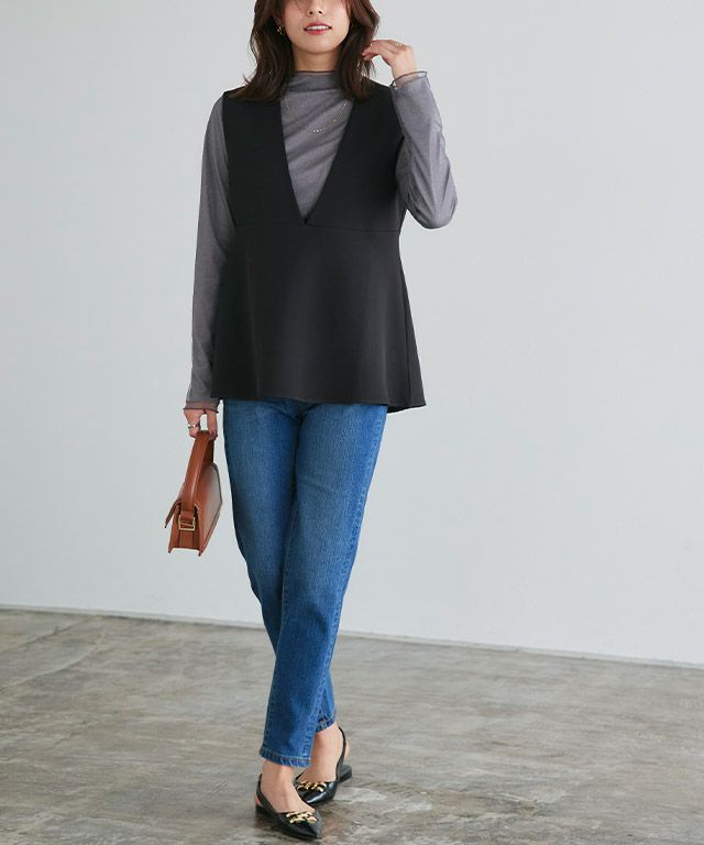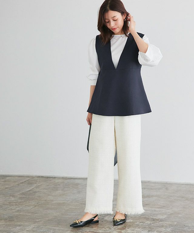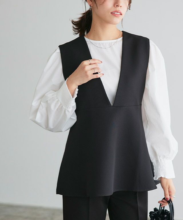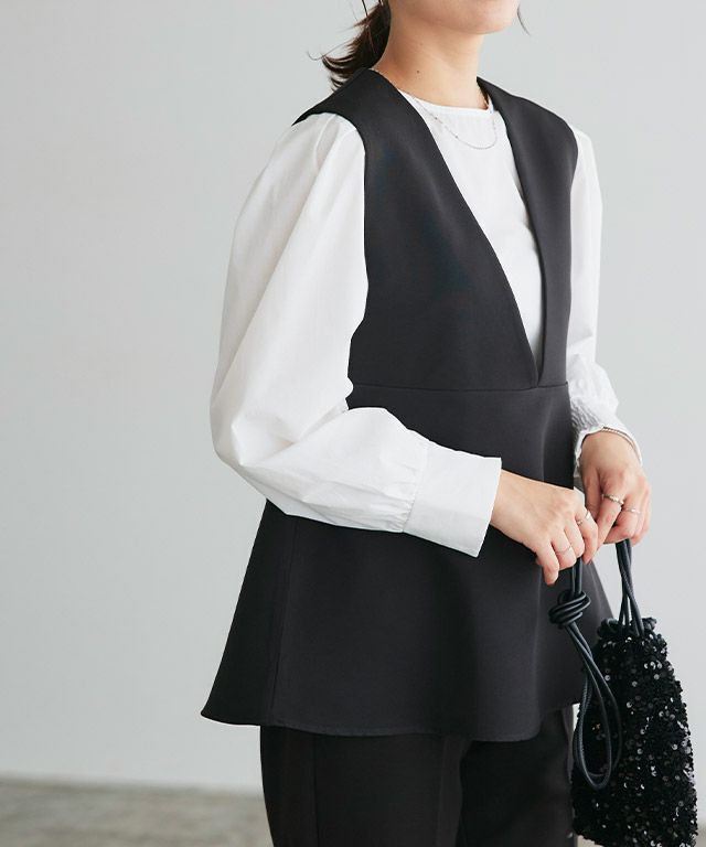 幅広く着回せる万能アイテム“ブラウスセットペプラムベスト”