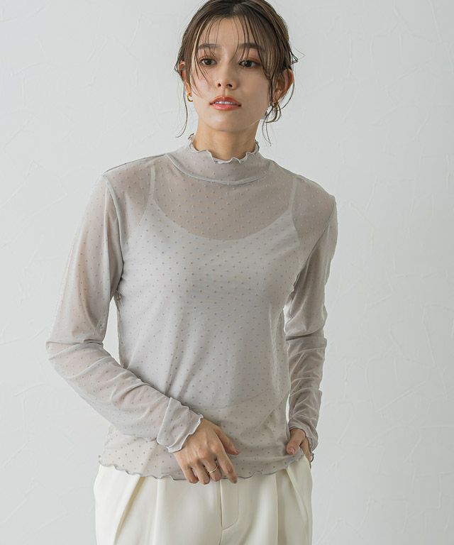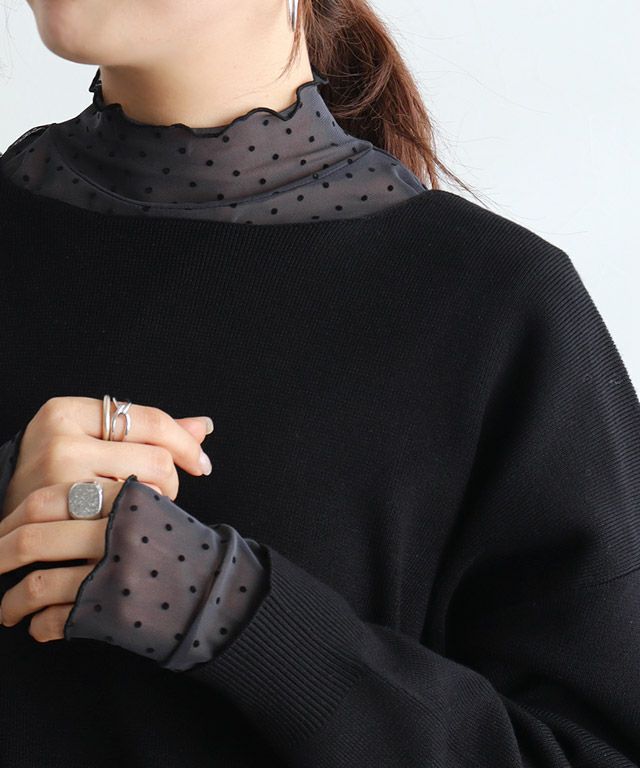 レイヤードスタイルのアクセントに“シアードットチュールハイネックトップス”