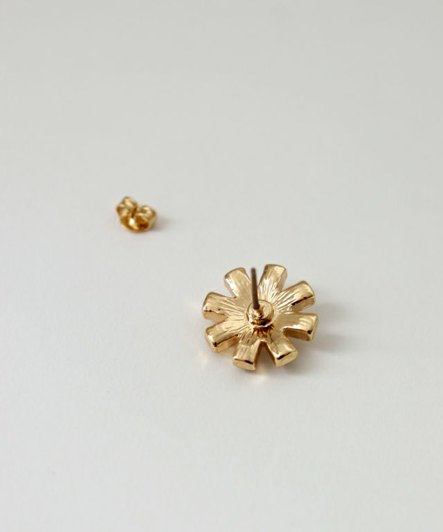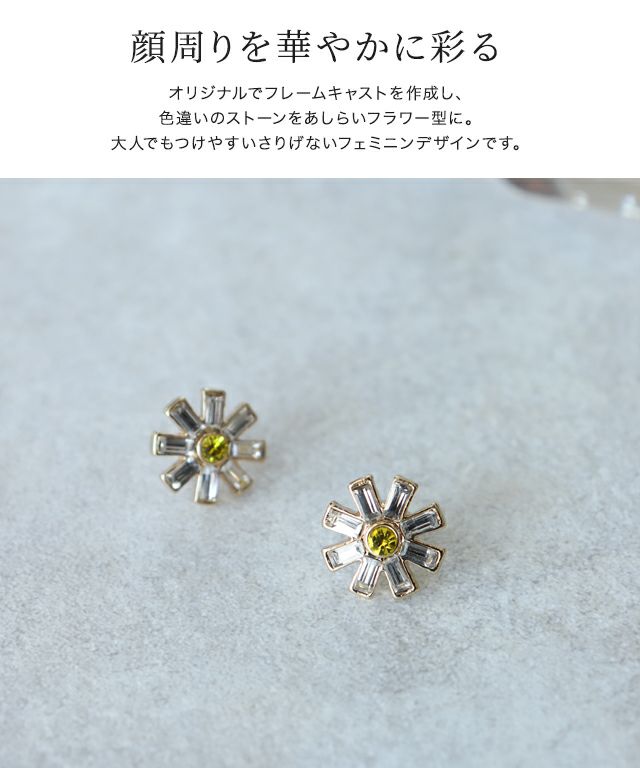 フェミニンを顔周りにプラスする“ビジューフラワーピアス”