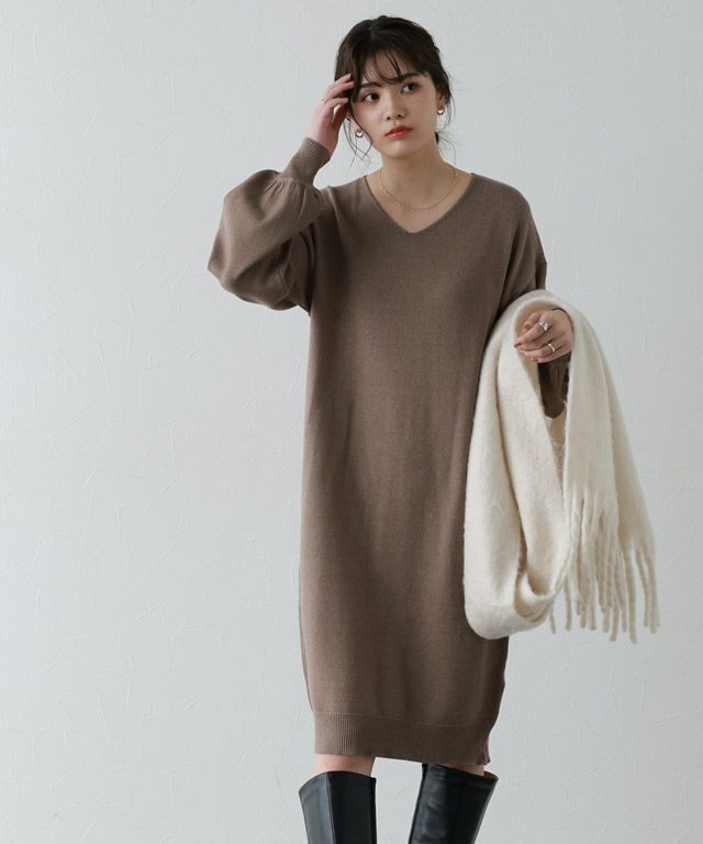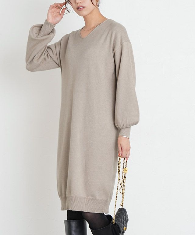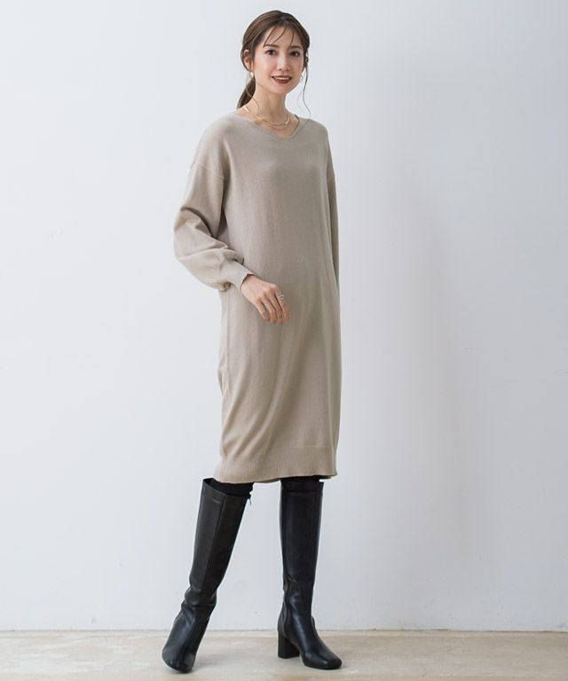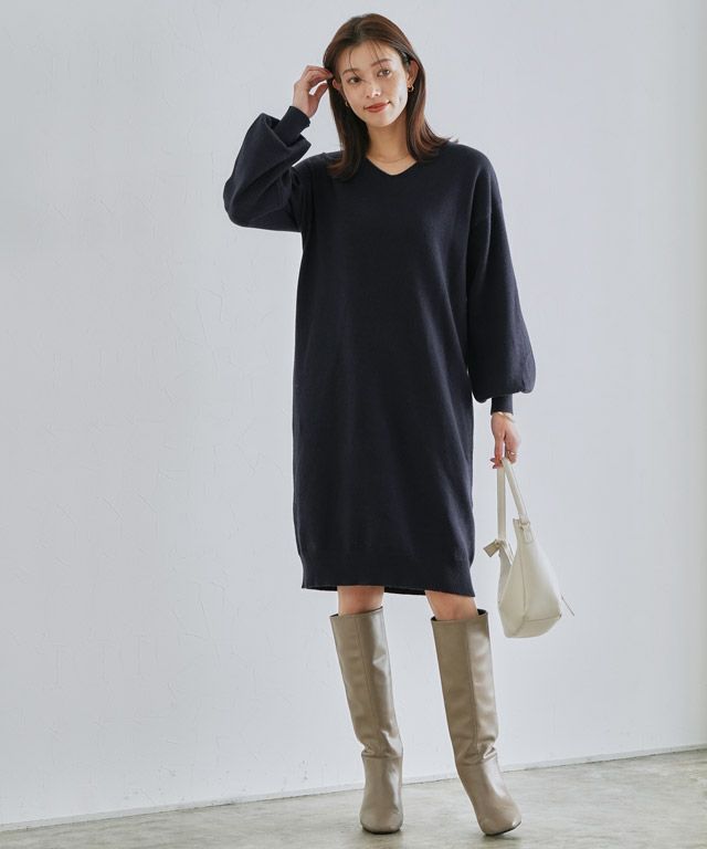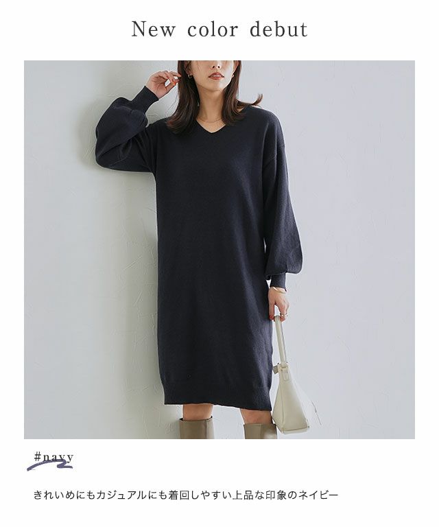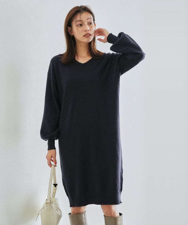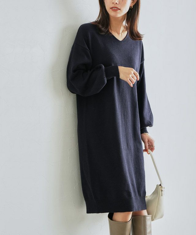 シーンに合わせて着こなせる“もっちりカシミヤVネックニットワンピース”