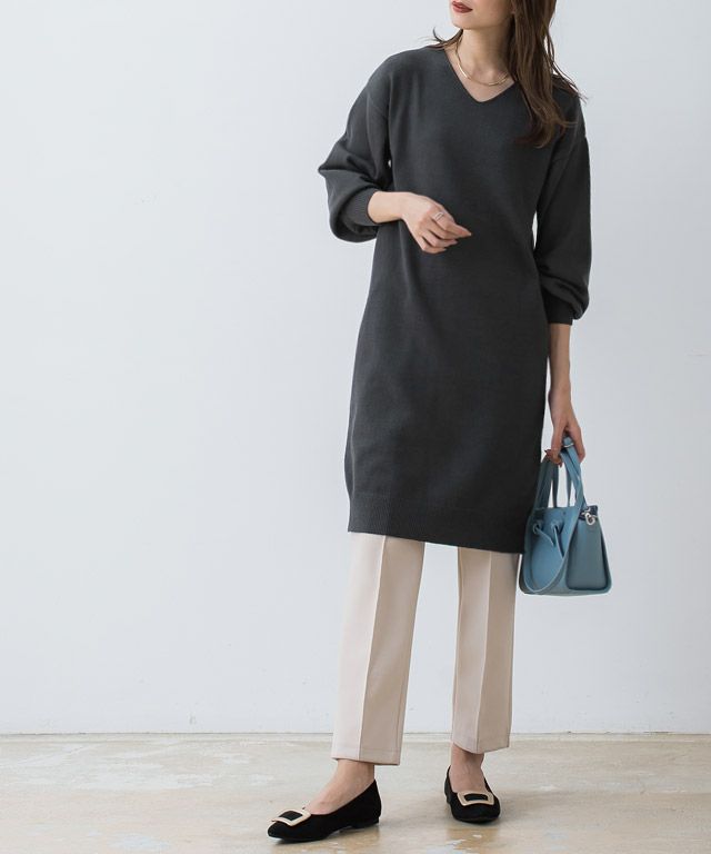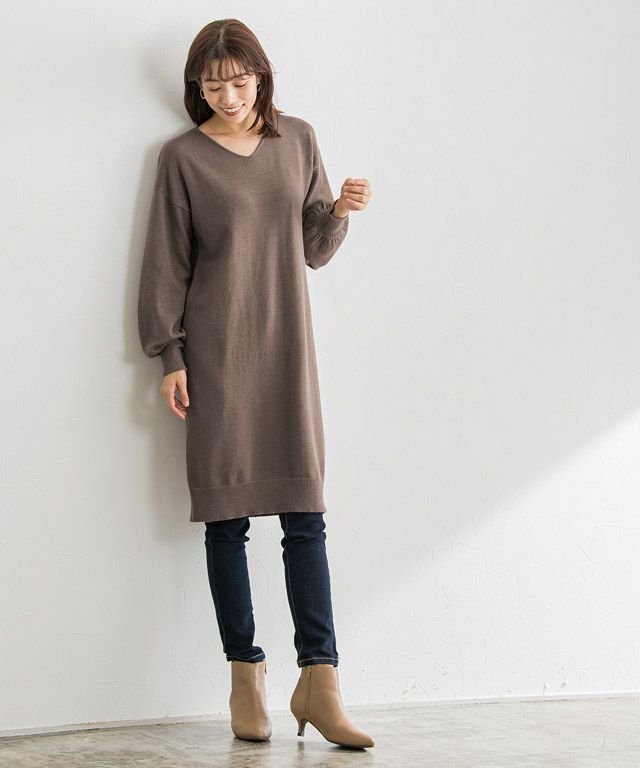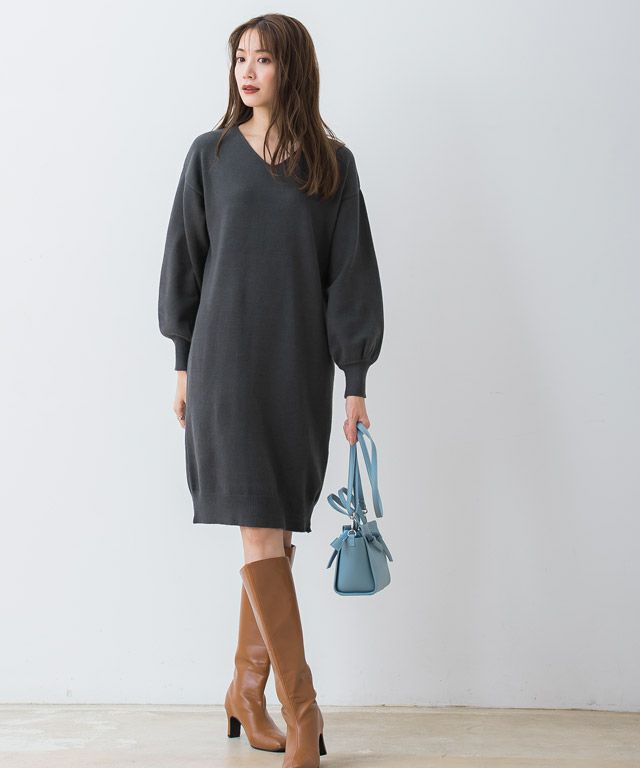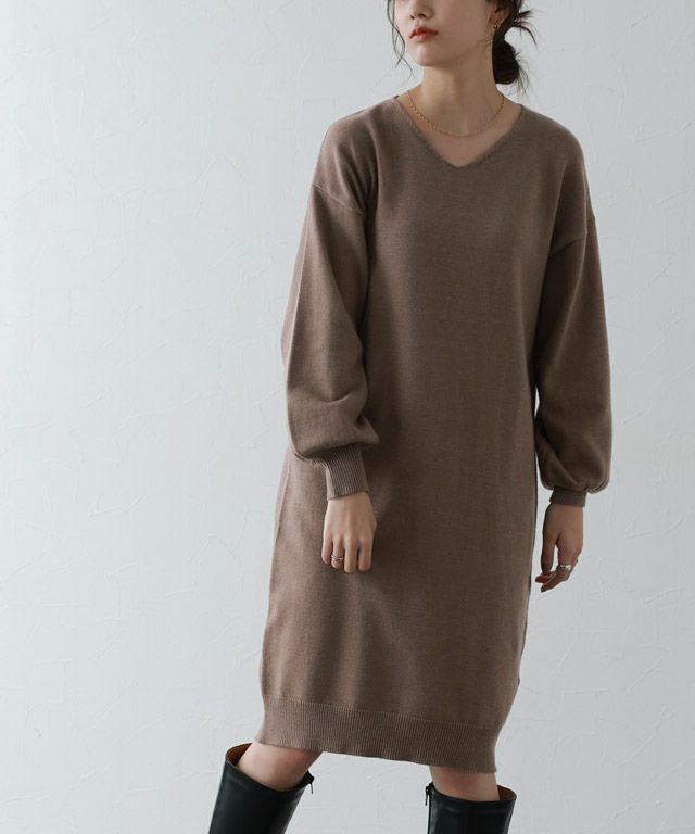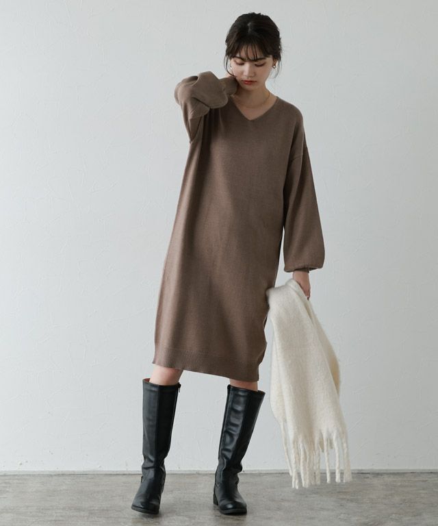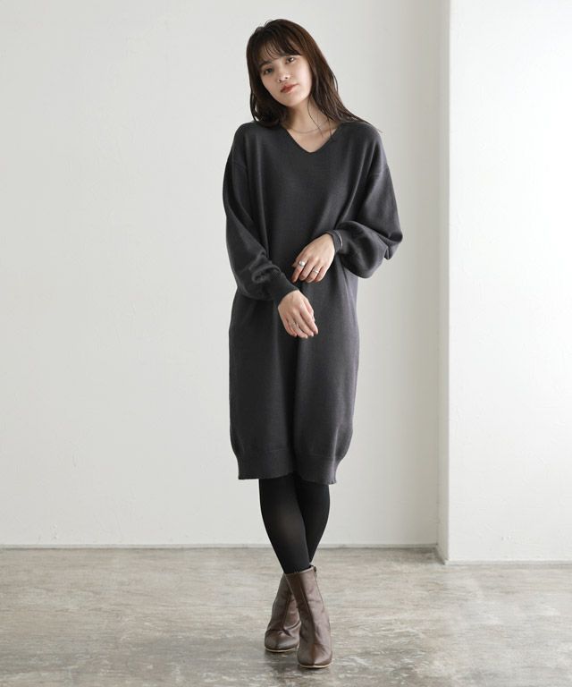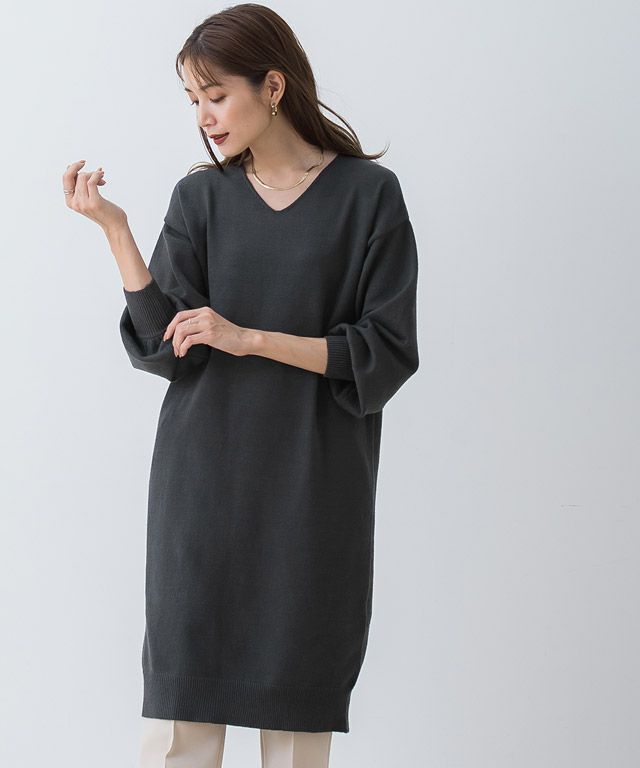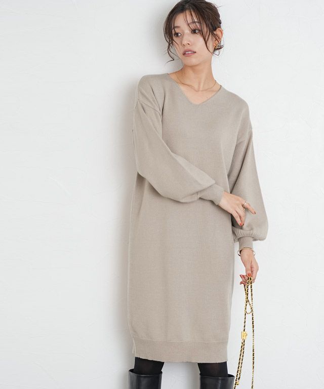 シーンに合わせて着こなせる“もっちりカシミヤVネックニットワンピース”