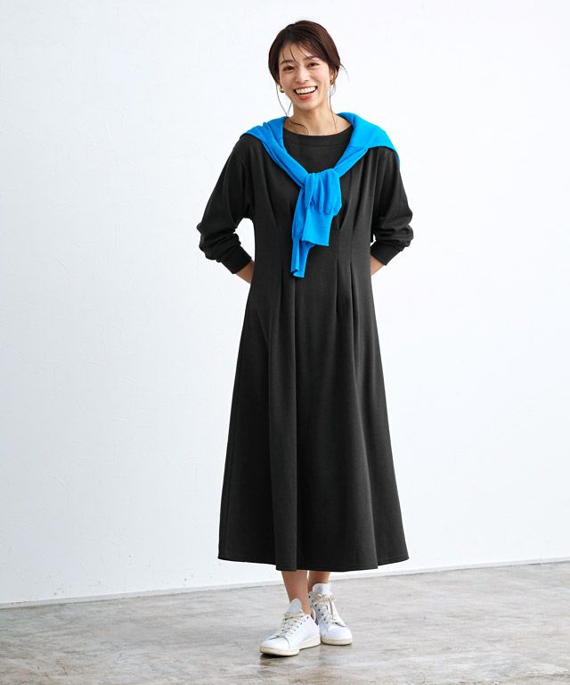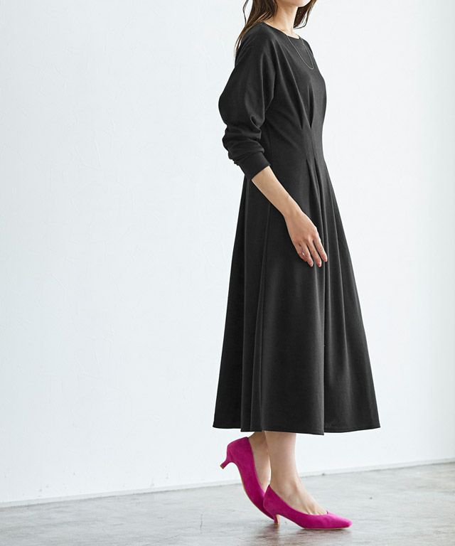 着るだけで女性らしい美ラインに“ウエストタックフレアワンピース”