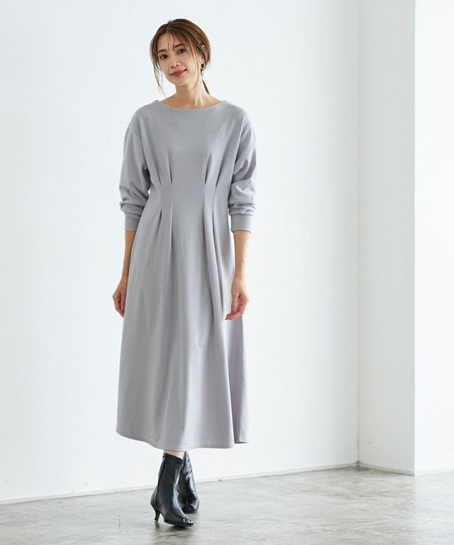 着るだけで女性らしい美ラインに“ウエストタックフレアワンピース”
