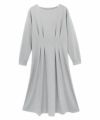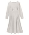 高めの位置でウエストマークされているので、脚長効果が期待でき、ボートネックが顔周りをすっきり見せてくれます。