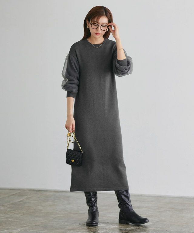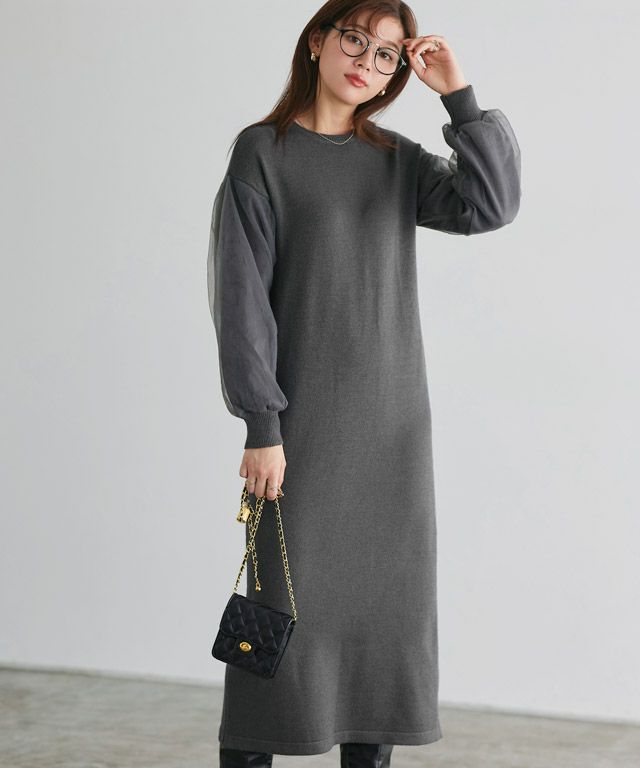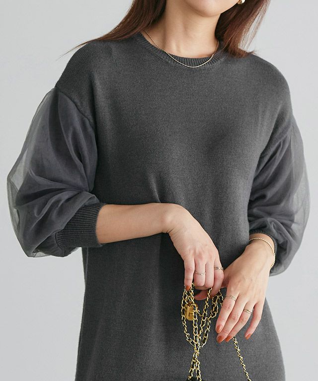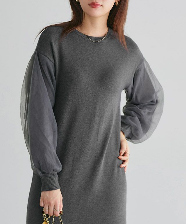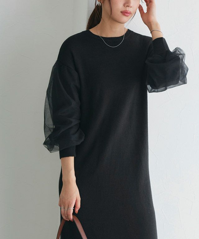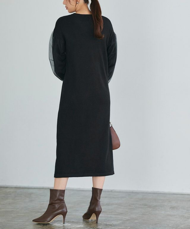 トレンドライクに着映える“チュールスリーブニットワンピース”