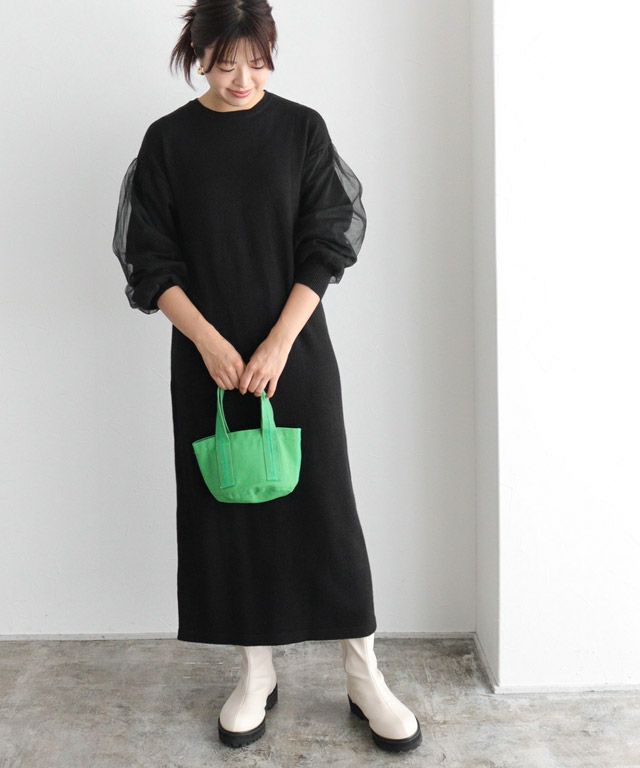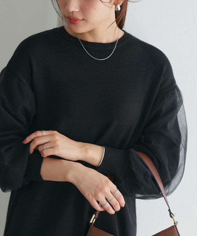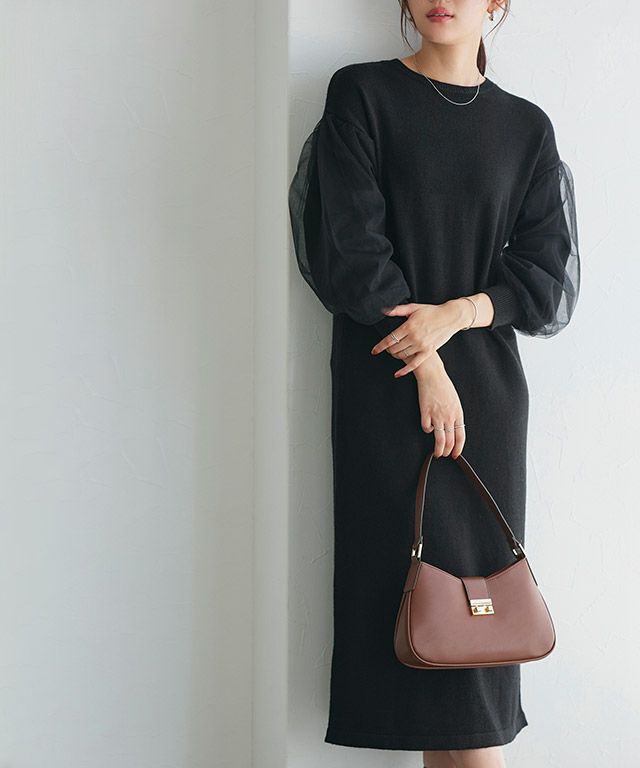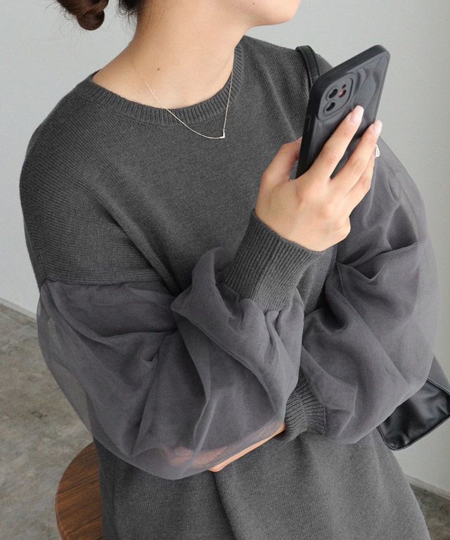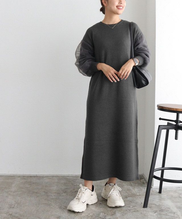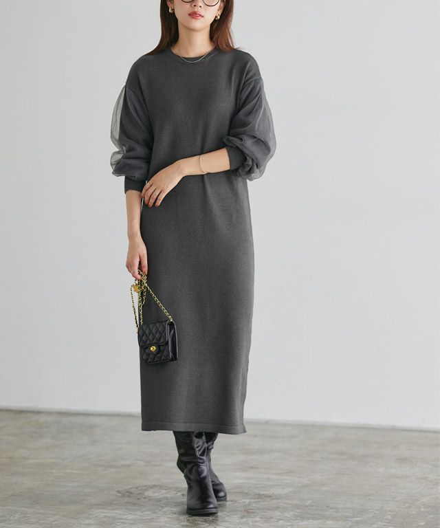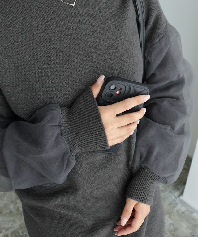 トレンドライクに着映える“チュールスリーブニットワンピース”