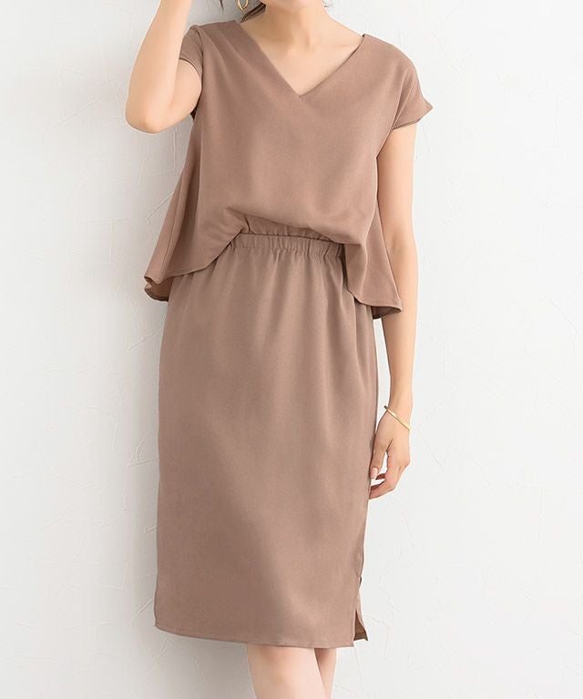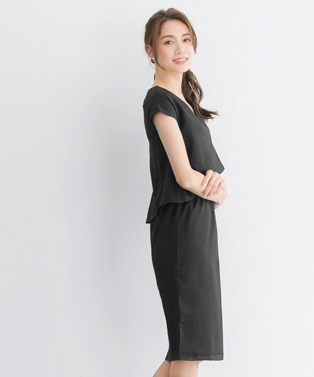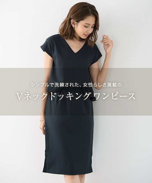 シンプルで洗練された、女性らしさ満載の“Vネックドッキングワンピース”