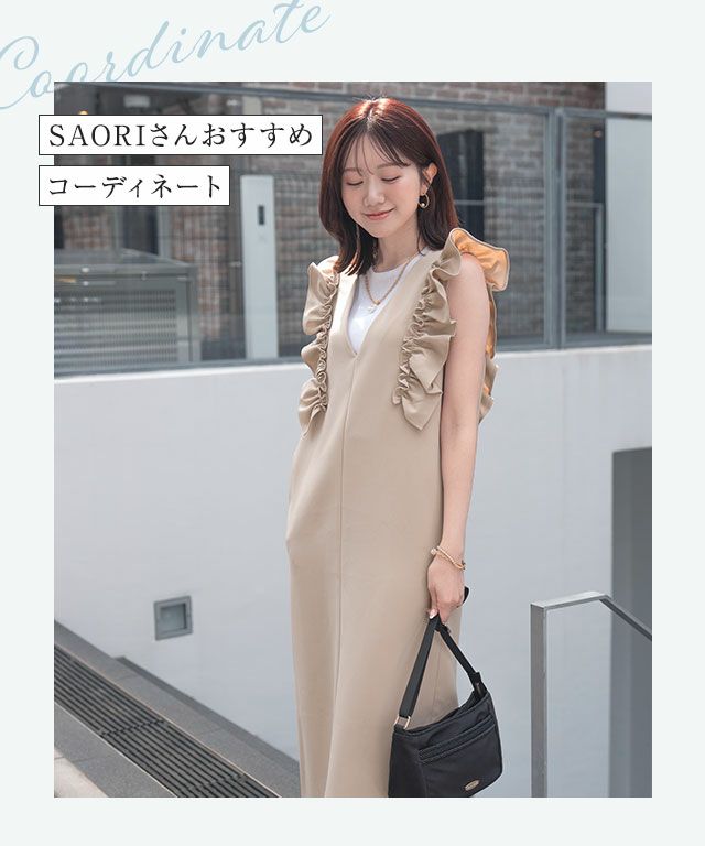 ショルダーフリルVネックジャンパースカート【SAORIさんコラボカラーアイテム】