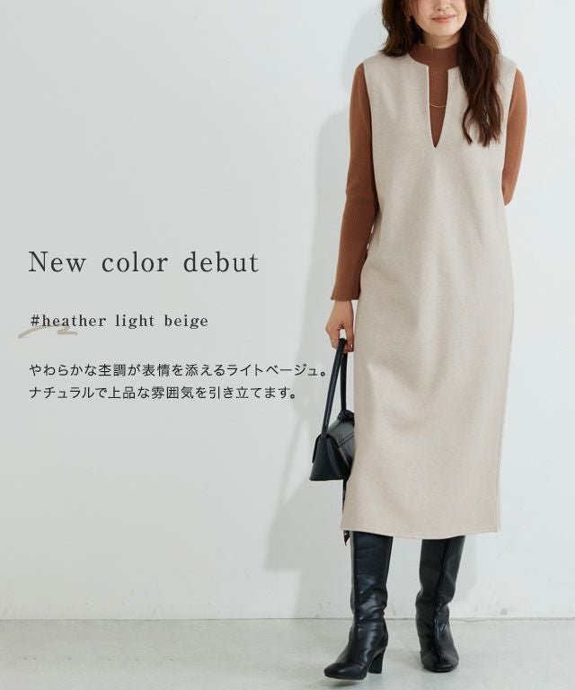 上質な風合いが大人の着こなしへと導く“ウールタッチジャンパースカート” 起毛がかったウールタッチ素材は柔らかく滑らかな肌触りが魅力。程よくハリ感があり、立体的で上品なシルエットを叶えます。 すっきりとした深Vネックは、女性らしいエレガントな着こなしをアシストします。シンプルなすっきりとしたシルエットで体のラインを拾いすぎない点も魅力の一つです。 【ブランド】 Pierrot(ピエロ)