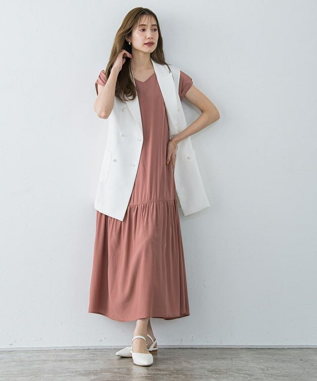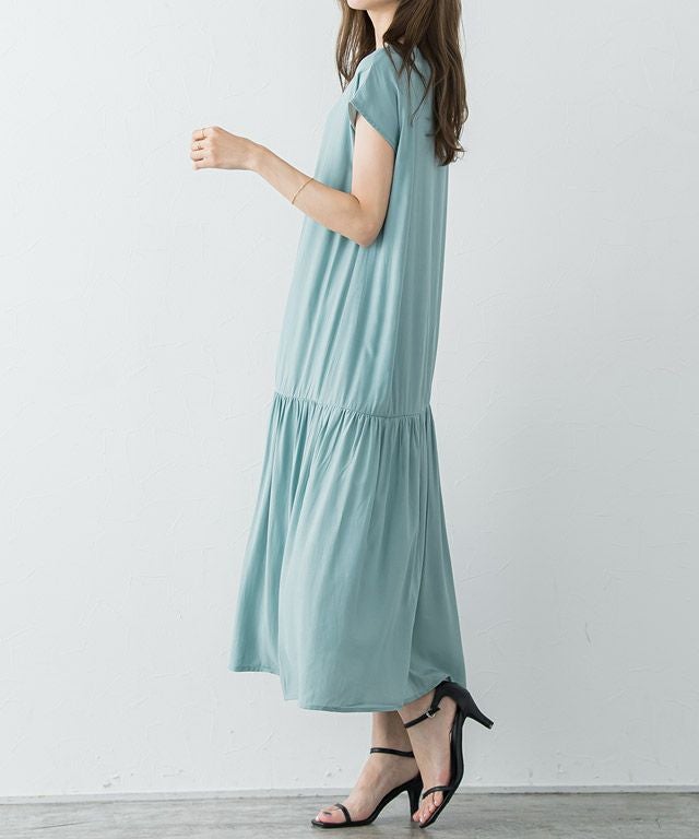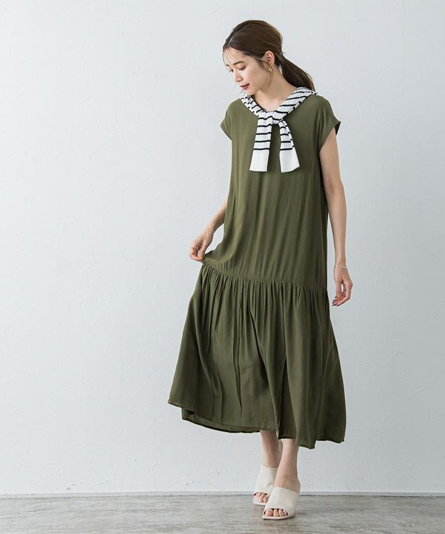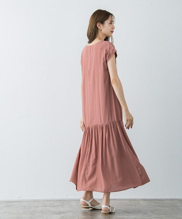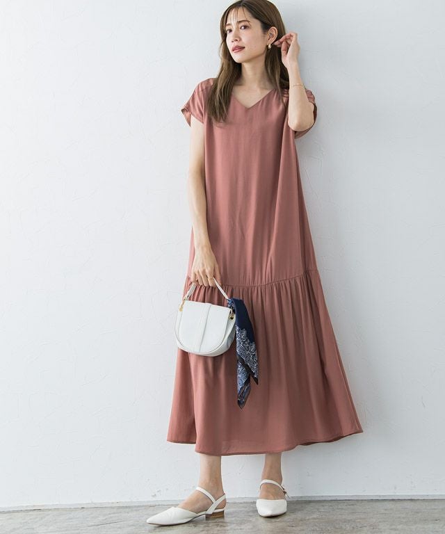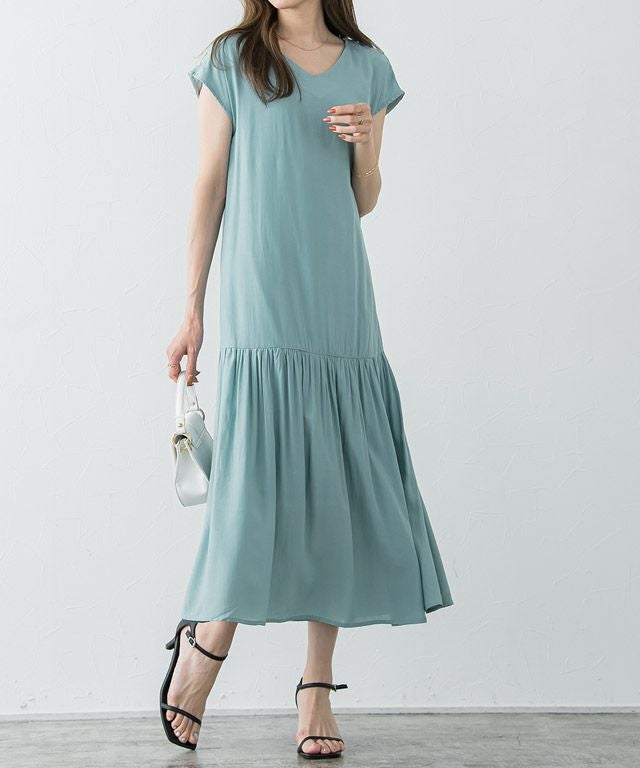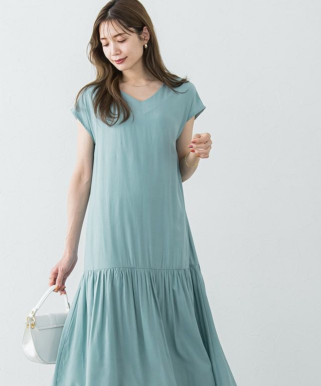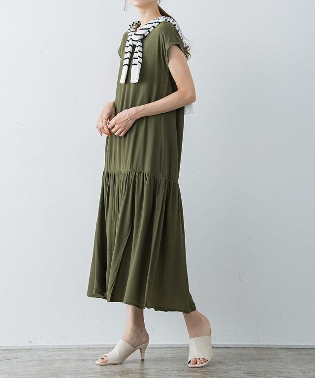 大人のリラクシー感漂う“裾切り替えフレンチスリーブワンピース” 落ち感のある柔らかい肌触りが魅力的なレーヨン混素材を使用することで大人な雰囲気に。 裾を切り替えたデザインでギャザーを贅沢に施すことで、ふんわりとした女性らしいシルエットに◎首元はVネックにすることですっきりとした抜け感を演出します。 【ブランド】 Pierrot(ピエロ)
