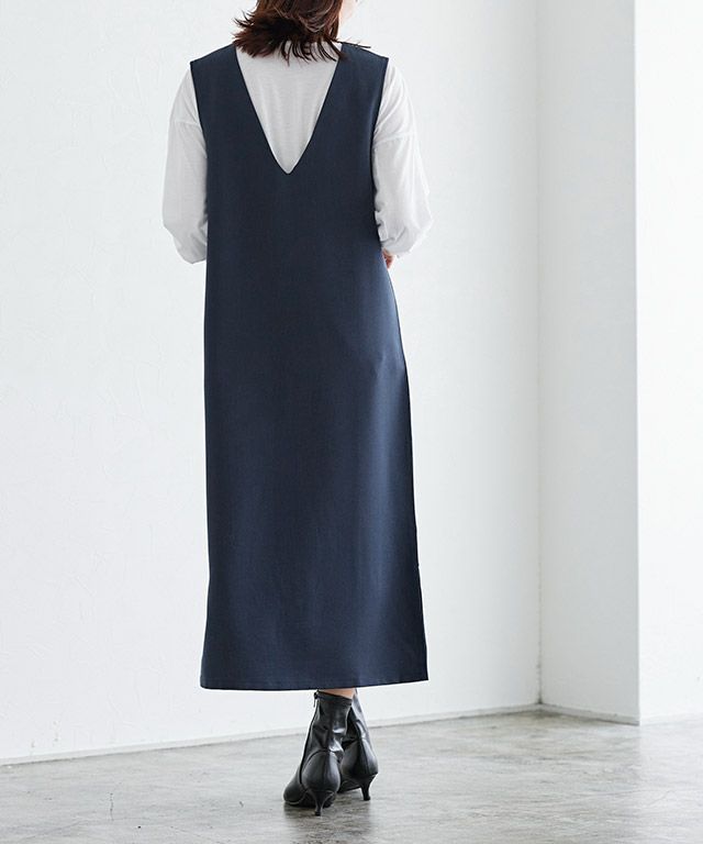 深めのVネックとクルーネックの2wayで着られるデザイン。インナーのデザインやスタイリングによって着こなしを楽しめます。すっきり見えするIラインシルエットが落ち着いた大人な印象に。サイドにスリットを入れることで、抜け感をプラスしました。インナー次第でロングシーズン着回しできる一枚です。
