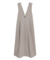 すっきりとしたVラインストラップがアクセントになったジャンパースカート。さりげなく広がるセミフレアシルエットが女性らしさを漂わせます。ウエスト部分にあしらったタックがスタイルアップポイントに◎インナー次第で長く着回せるアイテムです。