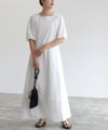 織りでストライプ柄になった生地がさりげないアクセントに。立体的なパフとフレアシルエットが女性らしい印象の一枚。スクエアネックがデコルテラインをきれいに見せてくれます。生地の柄とデザインがあるので、一枚で着映える夏のワンピースです。