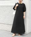Mサイズ:着丈は足首ちょうどの丈感でした。袖丈は肘上です。身幅はややゆとりがありました。裾のフレア感がきれいです。首元綺麗に見せてくれるスクエアネックでした。