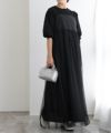 ワンピースの後ろ身頃は着脱のしやすさにもこだわったシャーリング仕様。チュール部分は生地を贅沢に使用することでボリューム感のある仕上がりに。ニットは7分袖でほんのり透け感もありながらも、体のラインを拾わずインでもアウトでも着られるので気分に合わせてスタイリングしていただけます。