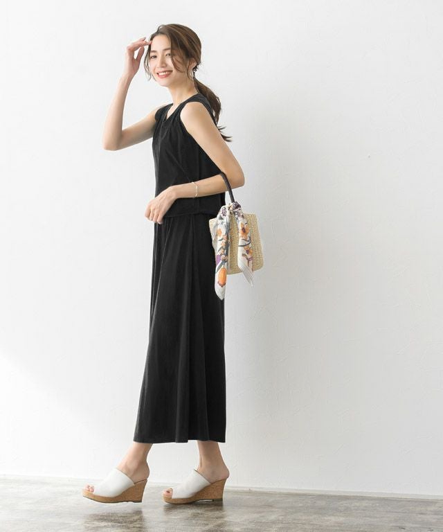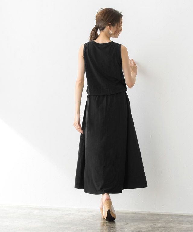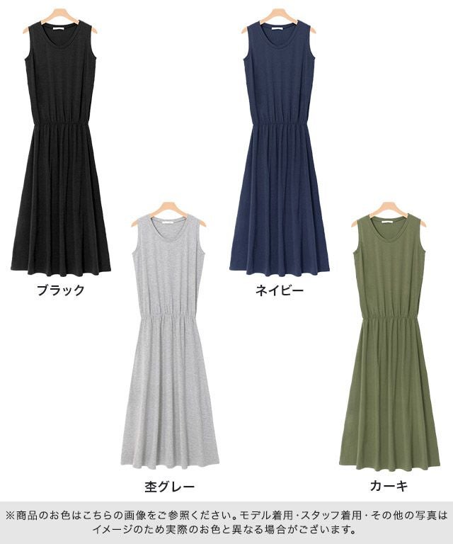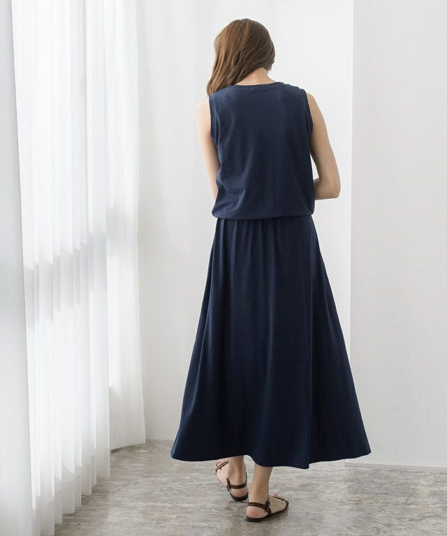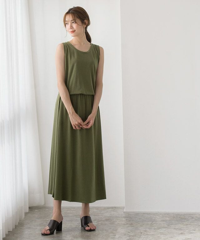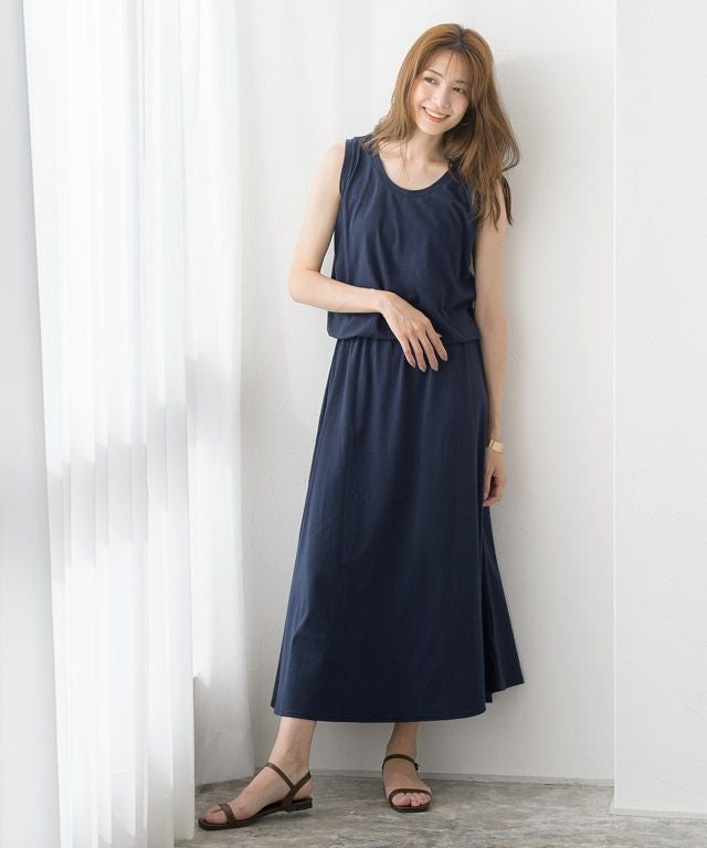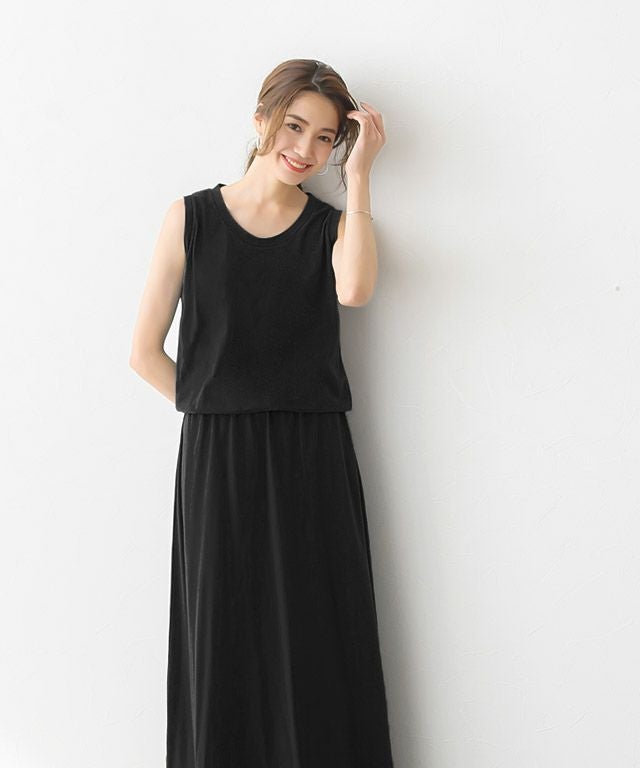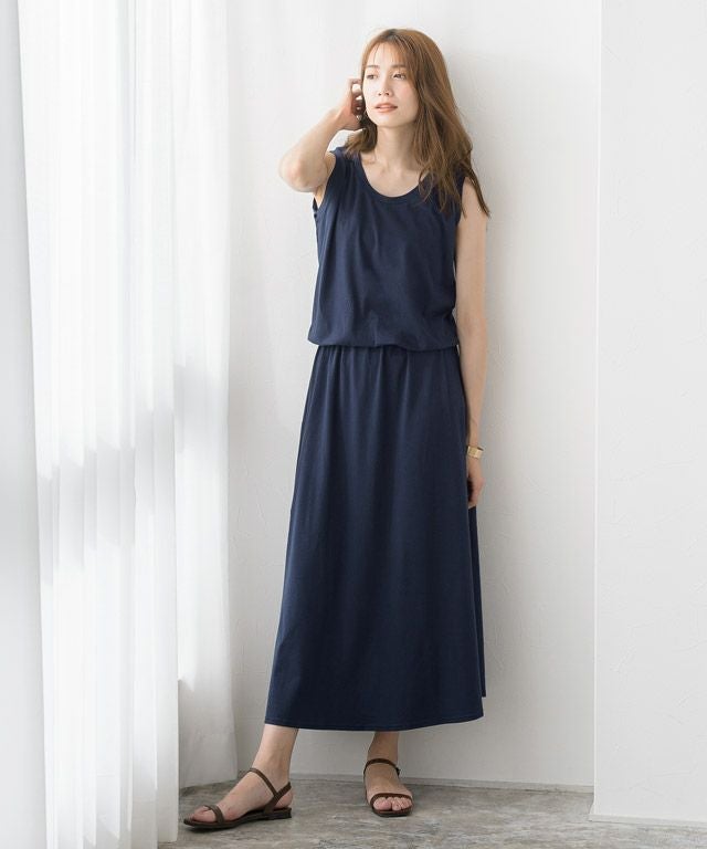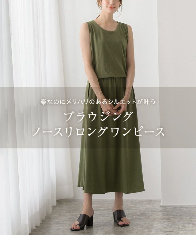 楽なのにメリハリのあるシルエットが叶う“ブラウジングノースリロングワンピース”