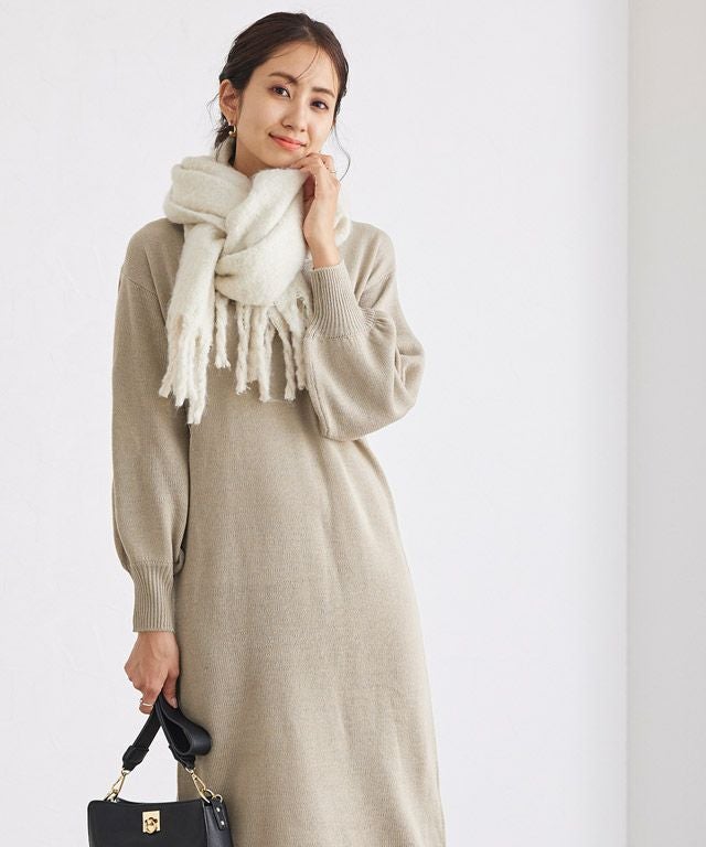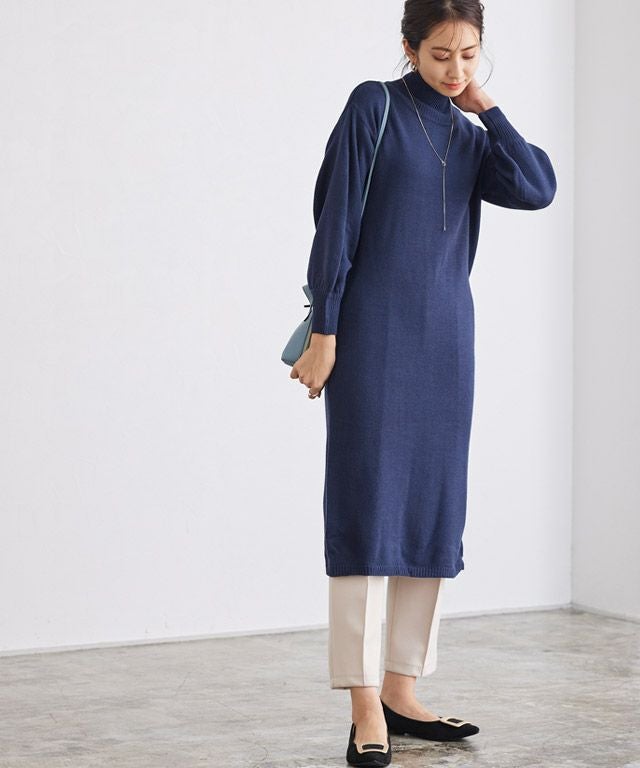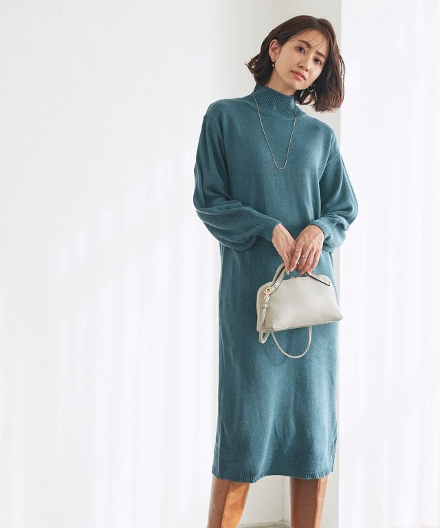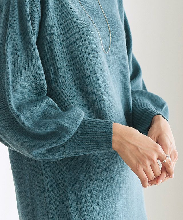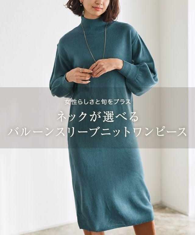 女性らしさと旬をプラス“ネックが選べるバルーンスリーブニットワンピース”