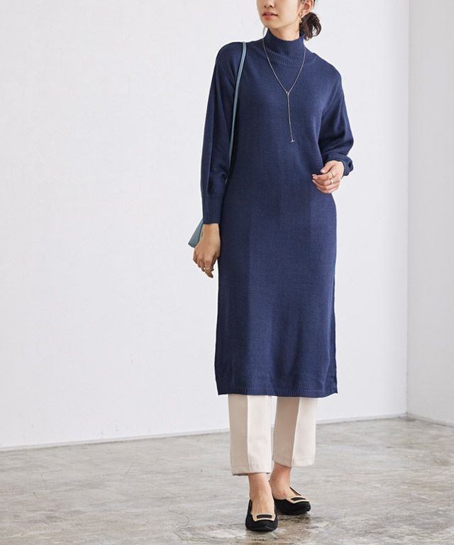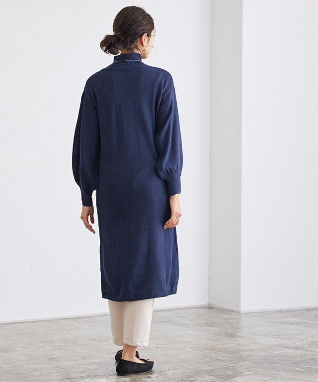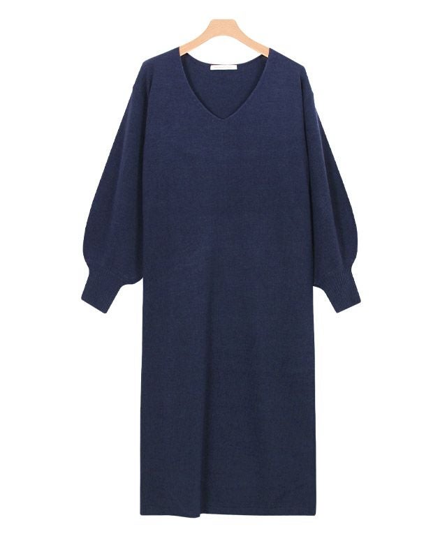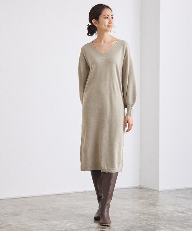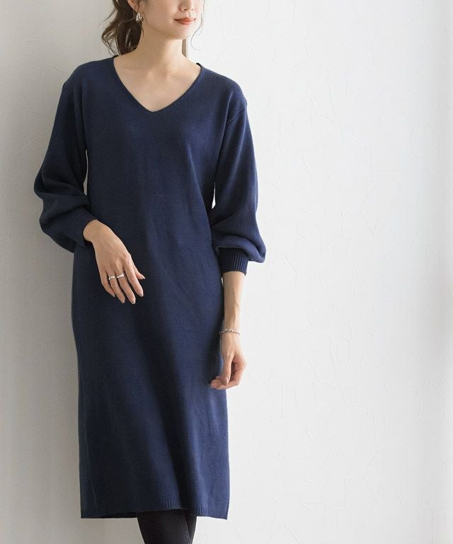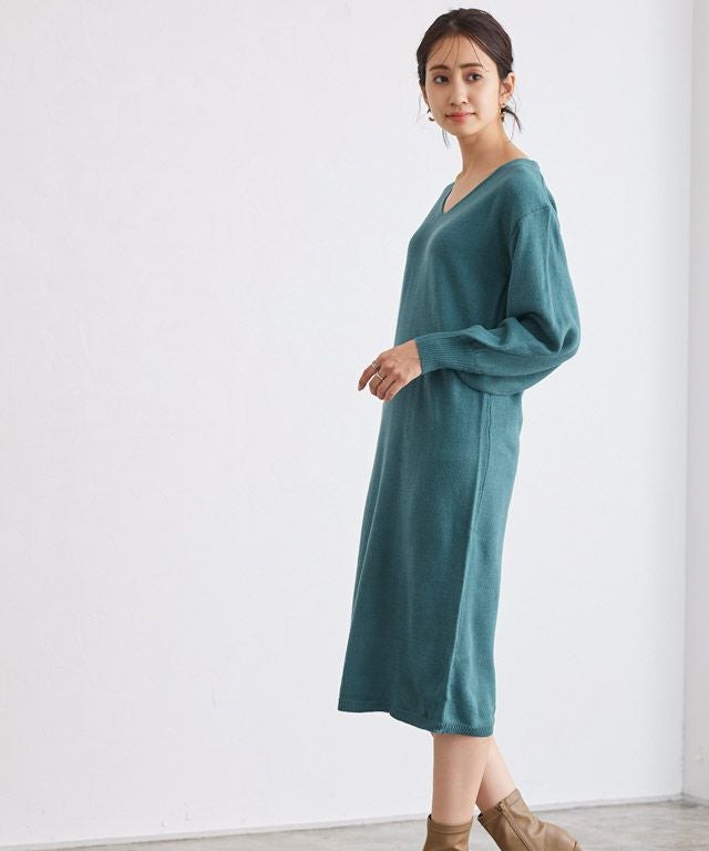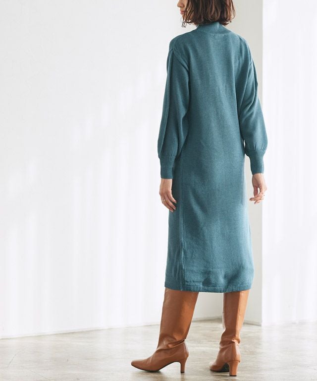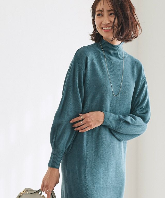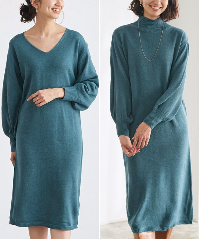 ネックが選べるバルーンスリーブニットワンピース 【スピード配送】